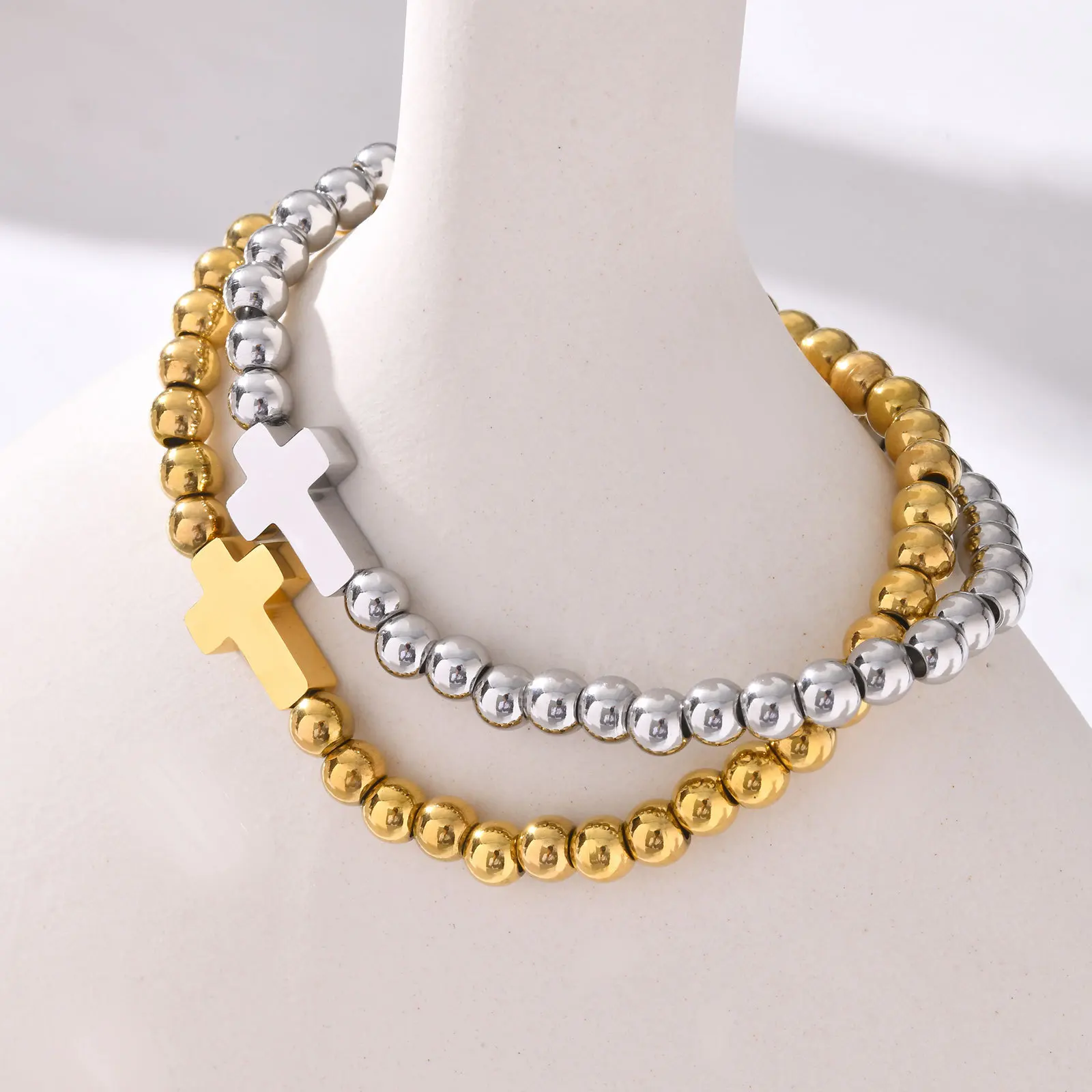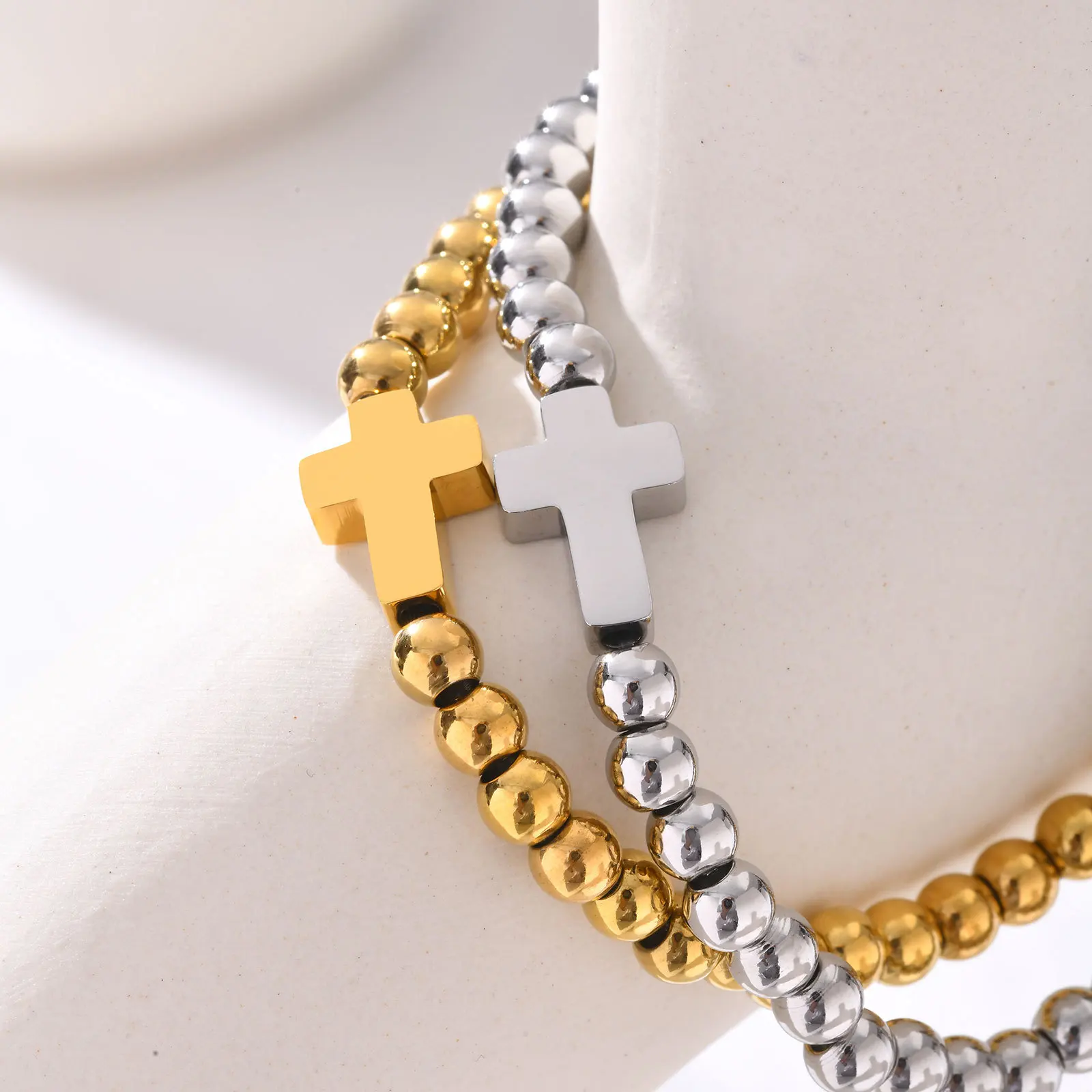 Factory Direct Deal Gold Plated Waterproof Women Cross Charm Bracelet Stainless Steel Jewelry Beads Bracelet