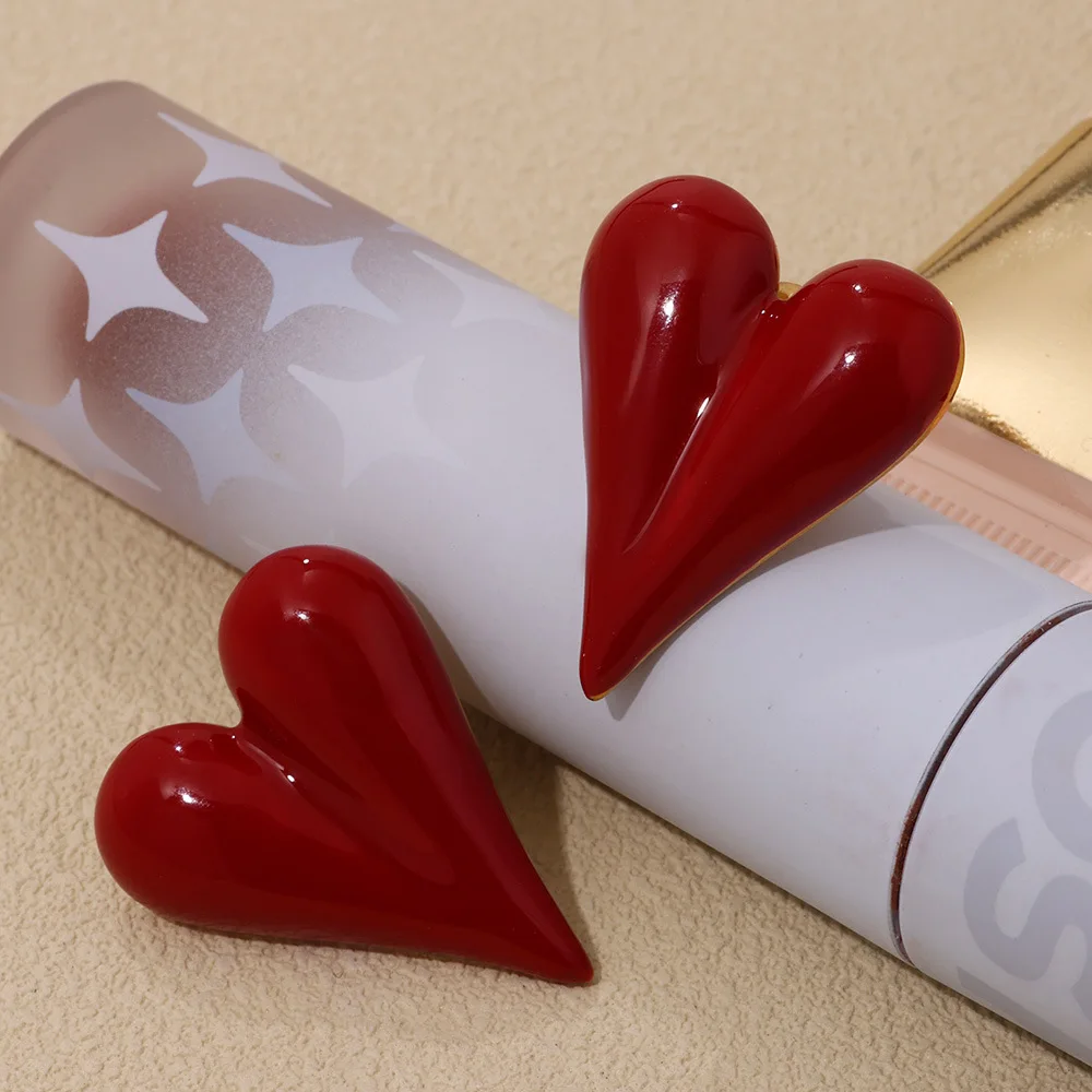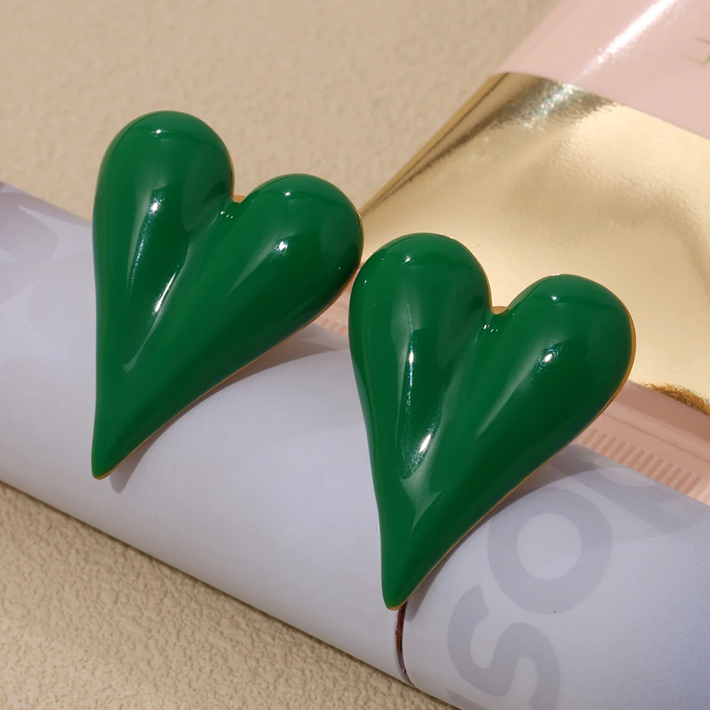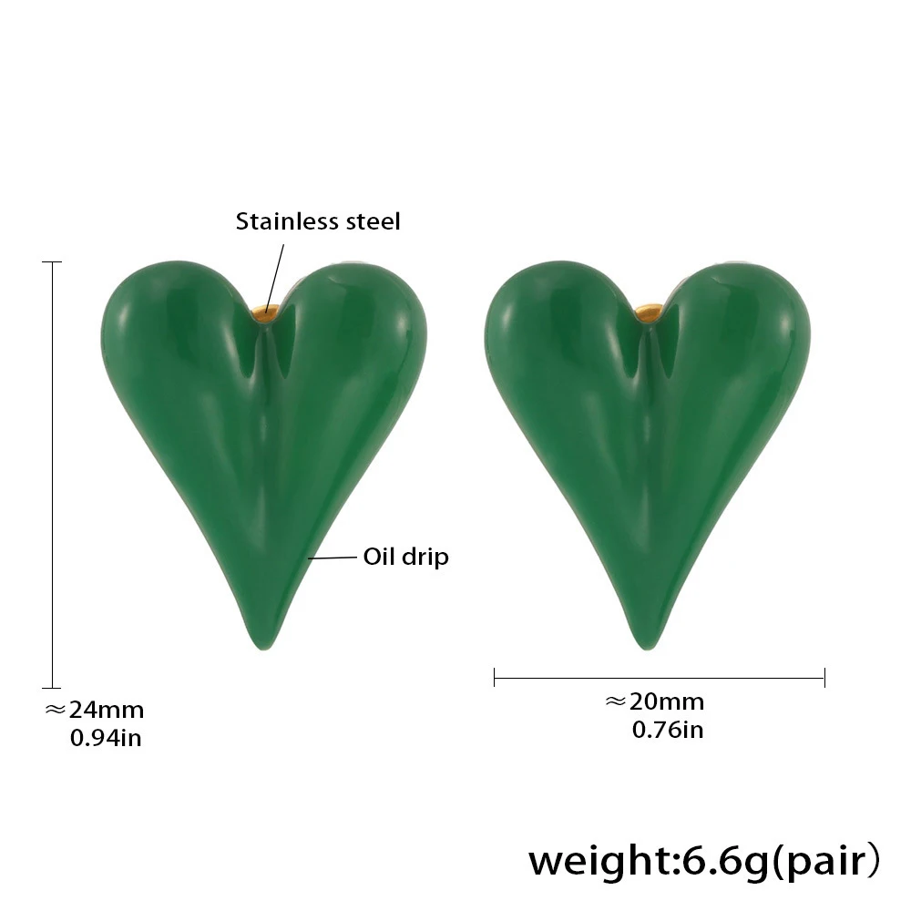 YUKAM Korean Fashion Stainless Steel Exaggerated Geometric Big Red Green Oil Dripping Enamel Love Heart Stud Earrings for Women