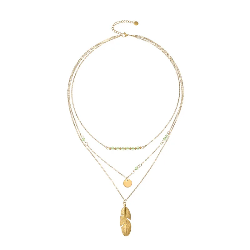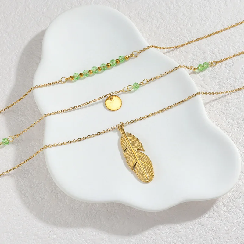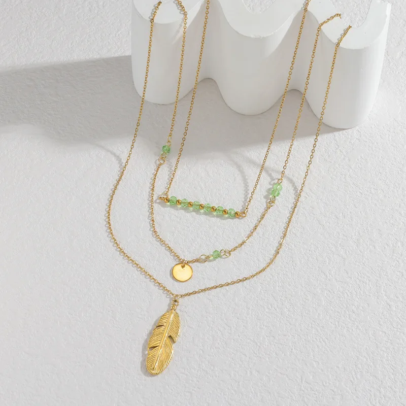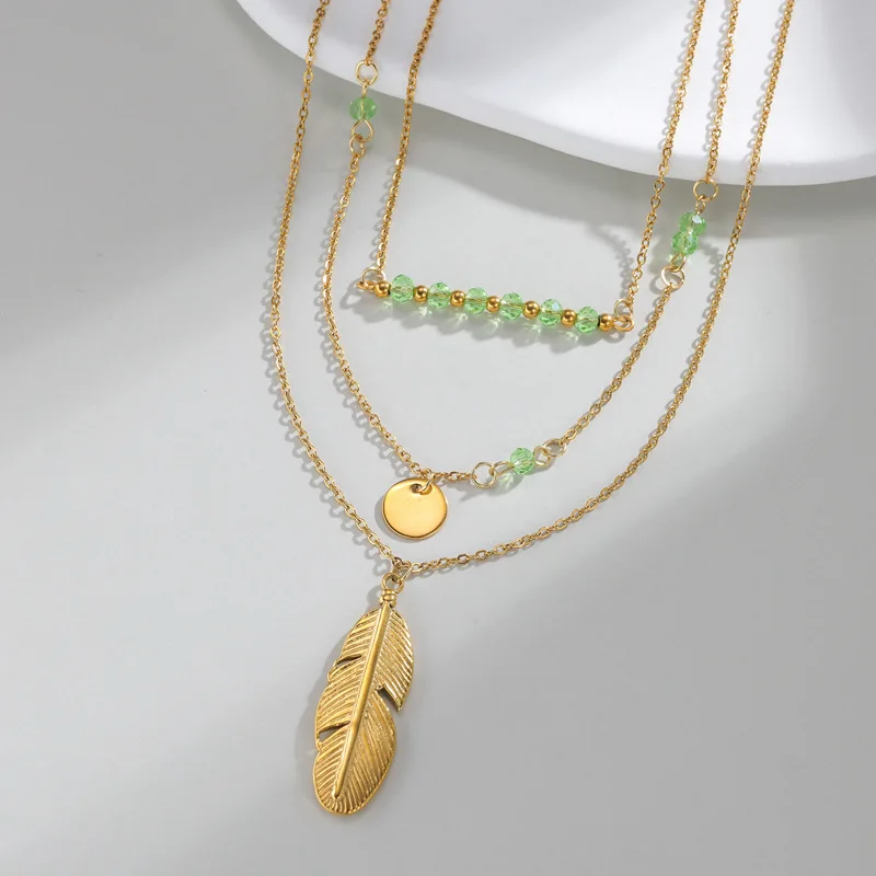 Titanium Steel Layered Necklace for Women Feather Pendant Necklace Jewelry Trending