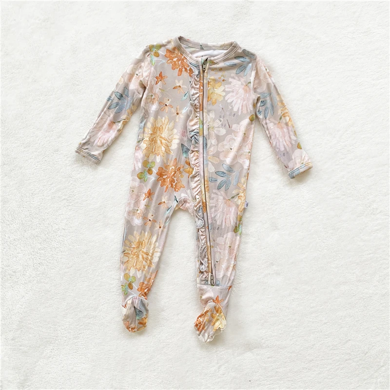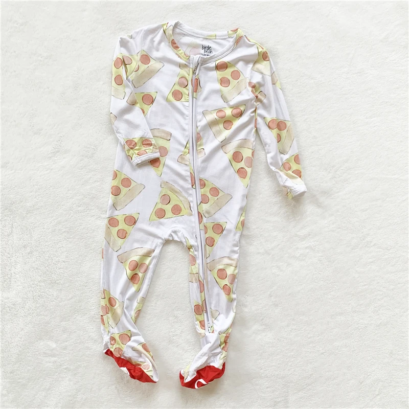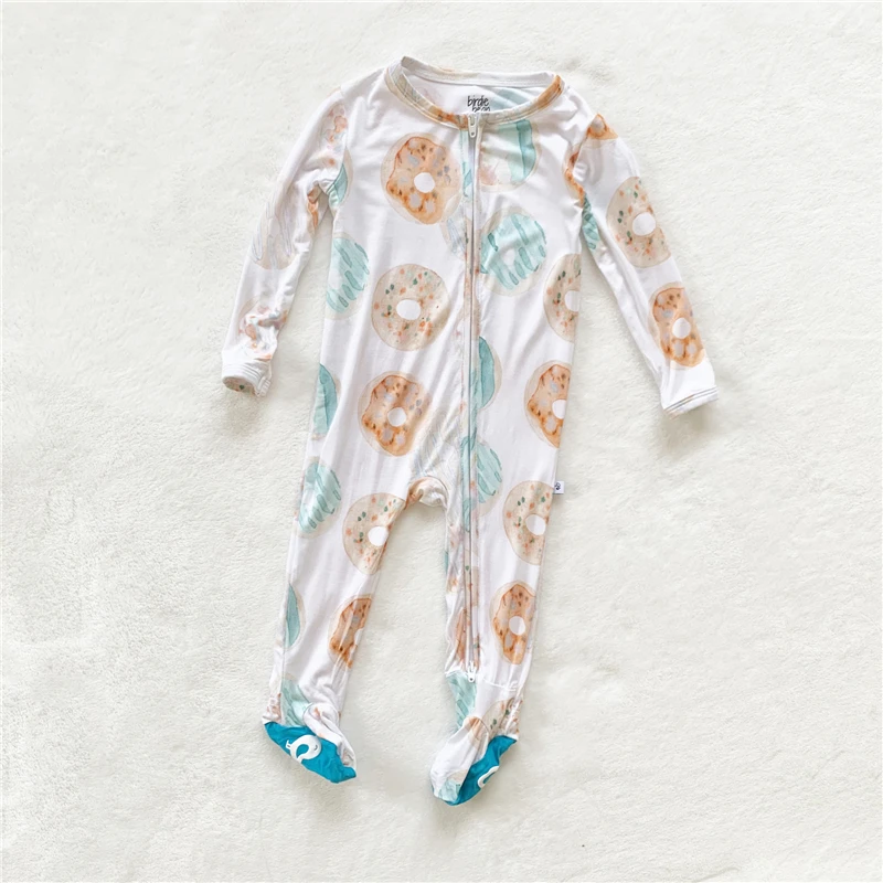 Custom High Quality 95% bamboo Fiber 5% spandex Fabric Long Sleeve With Zipper Printing Baby Boys Clothing Romper zipper