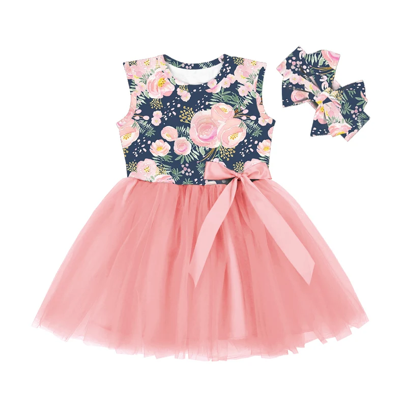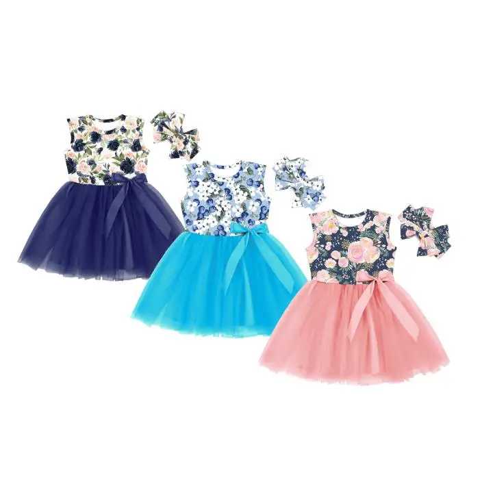SQ-082-YXX Royal Blue Lace Baby Girls Tutu Dress Toddler sleeveless Dresses Infant Tulle Sundress