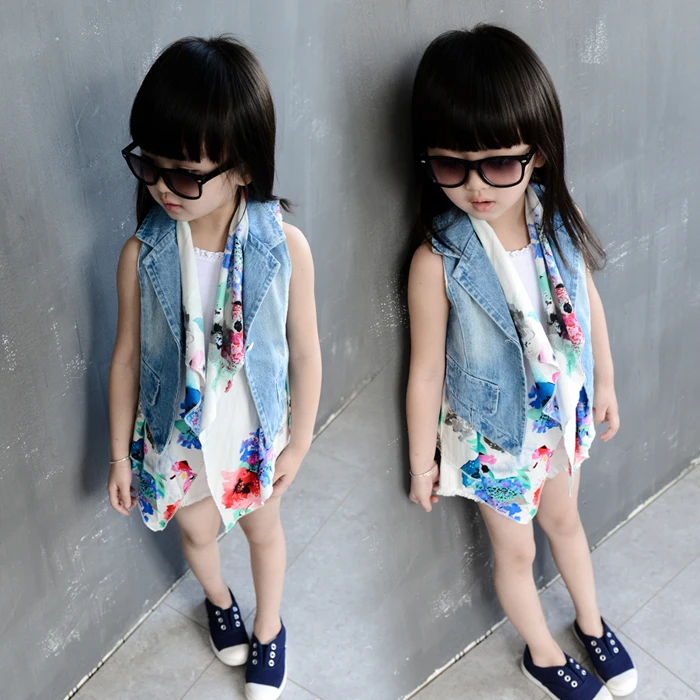 2015 Summer Outer Wear Korean Style Sweet Kids Girls jacket Jean Vest