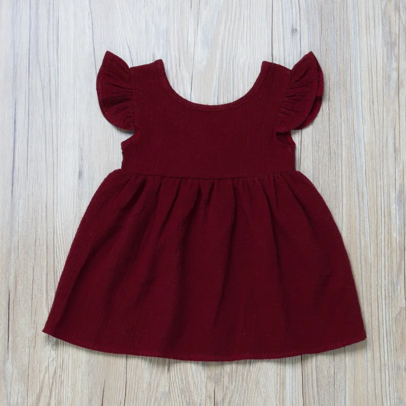 Online Wholesale Shop Girls Summer Fancy Pure Color Round Collar Loose Lace Sleeve Dresses Made In China