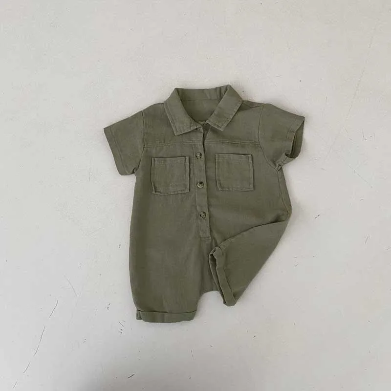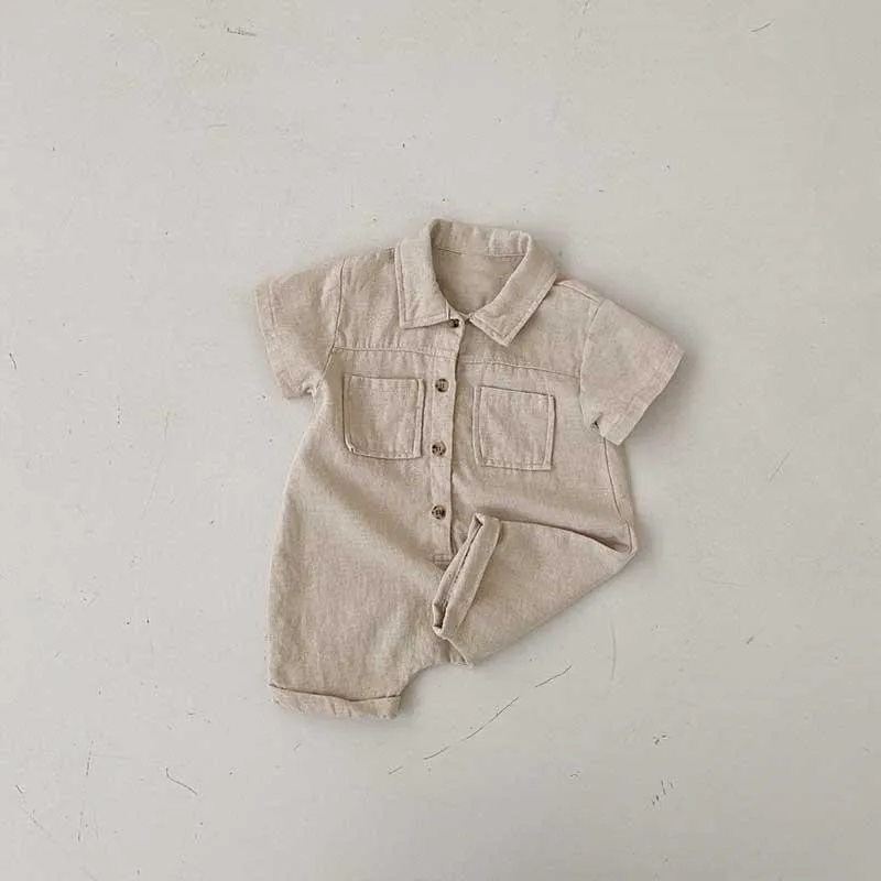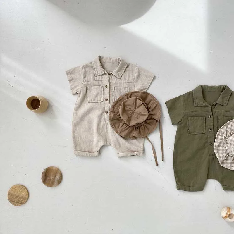 2022 Summer baby summer short sleeve cotton linen jumpsuit baby boy rompers high quality toddler soft cotton wear