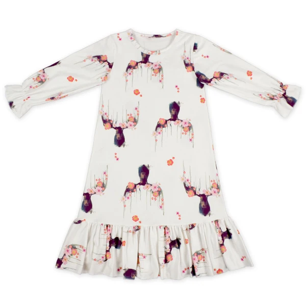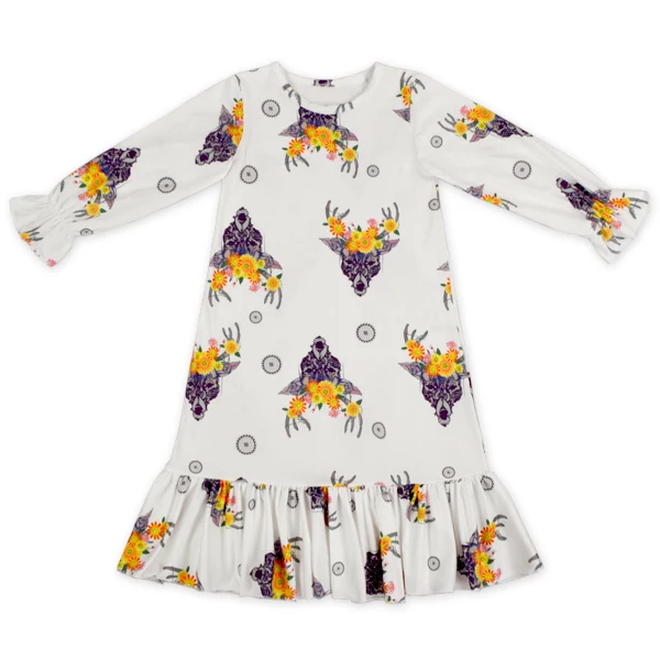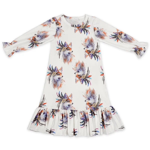 Digital Print Customization Elastic Long Sleeve Big Ruffle Bottom baby clothing wholesale toddler formal dress