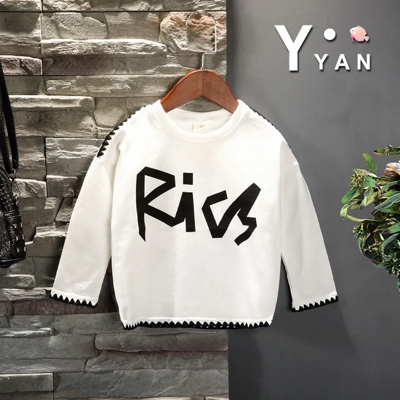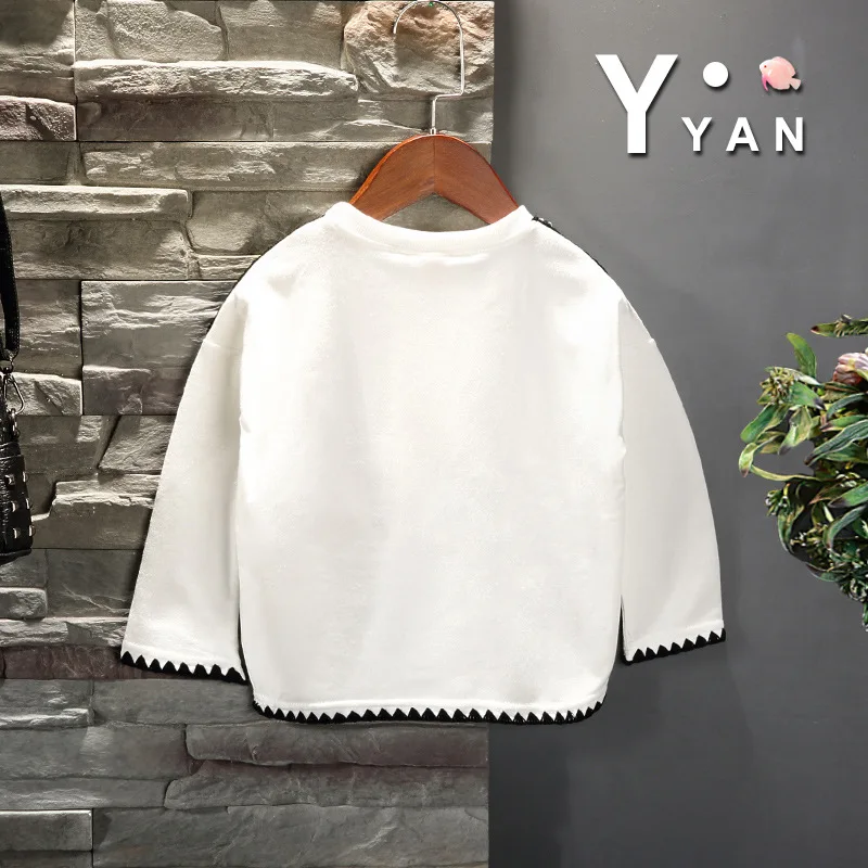 Children's Long Sleeve Top Apparel Customizable Plain Washed Ripped Tee Basic Layering Shirt Multi Colors