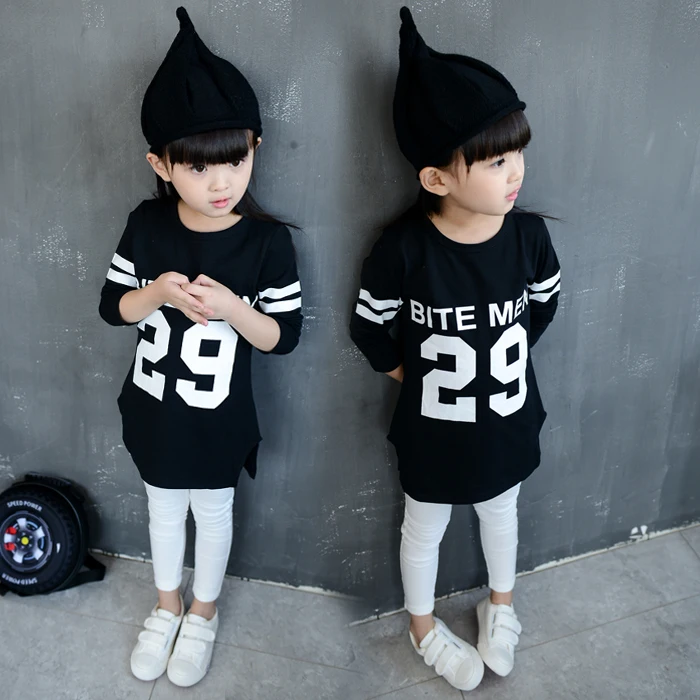 New Product Children Girls Fashion Design Number Printed Long T shirt