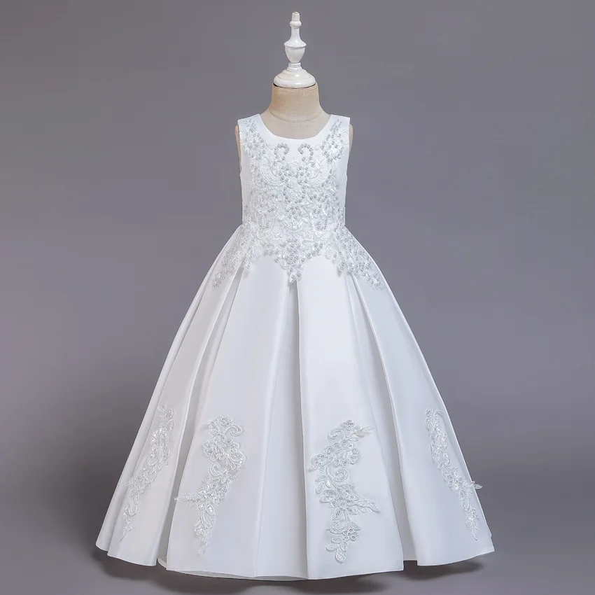 MQATZ Solid Color Satin Party Ball Gown Little Girls Dresses for 12 Years Old 2055