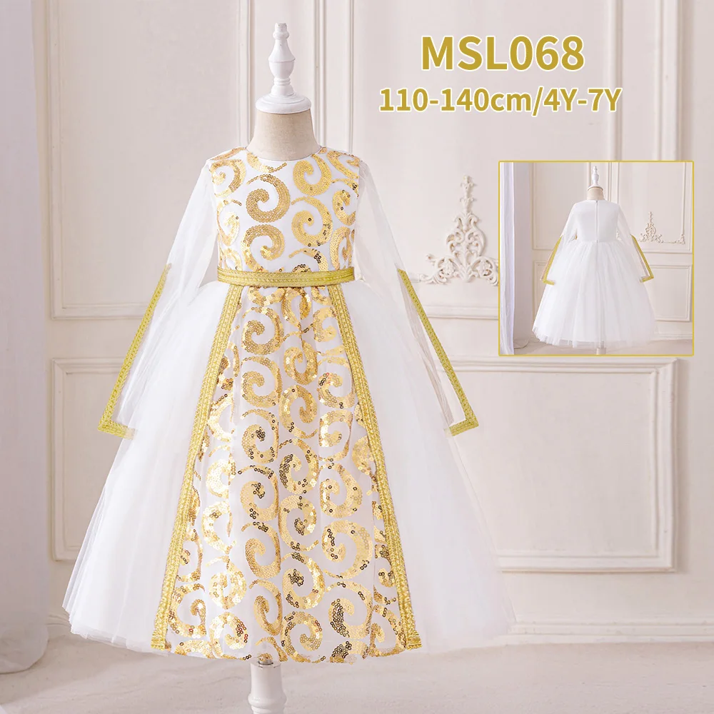 MQATZ New Long Sleeves Kids Collection Formal Middle East Islamic Clothing Soft Ball Gown Dresses with O-Neckline MSL068