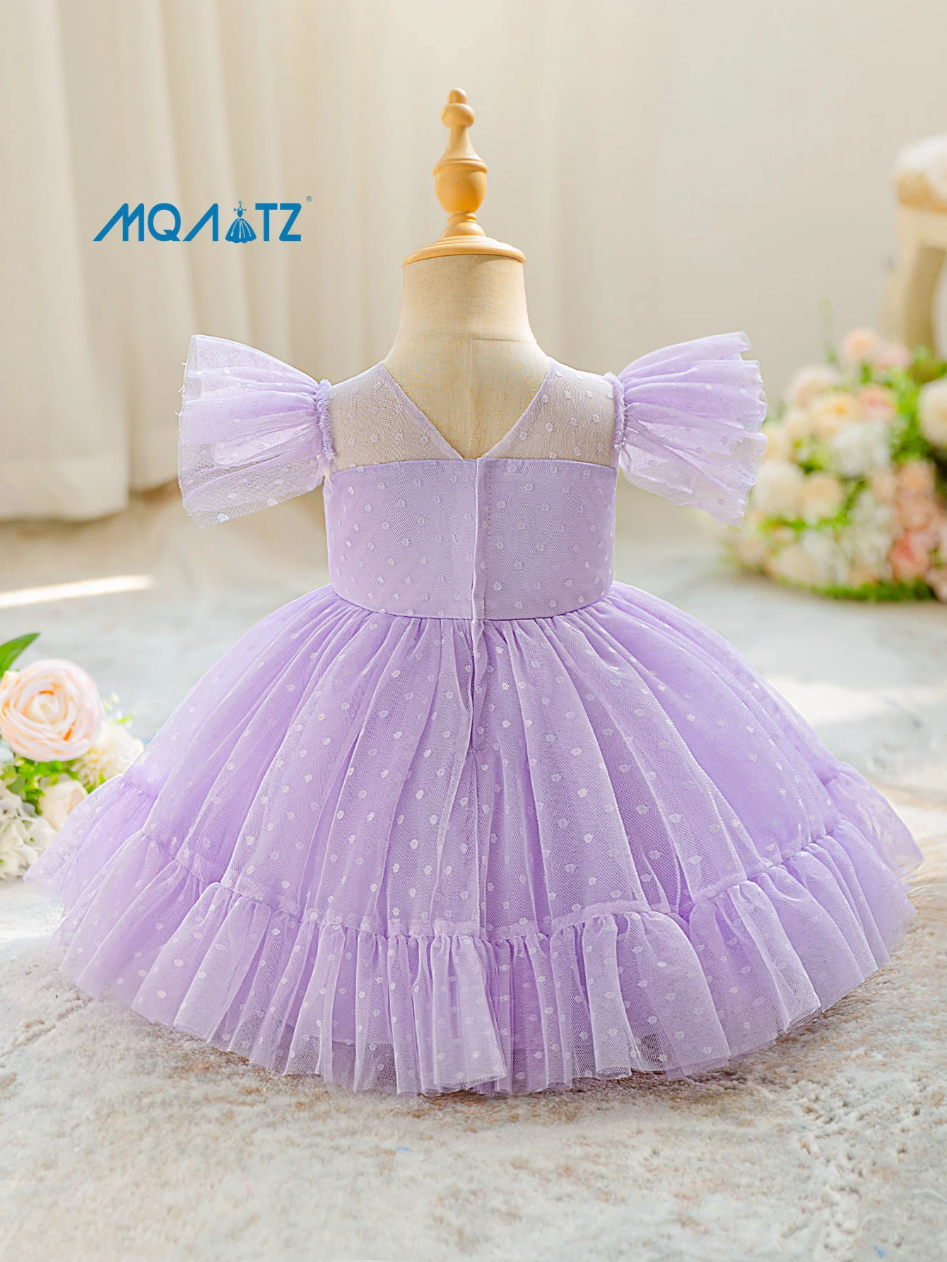 MQATZ Satin Dresses for Little Girls O-Neck Summer Print for Birthday Parties Plain Dyed Kids' Wear for Flower Girls