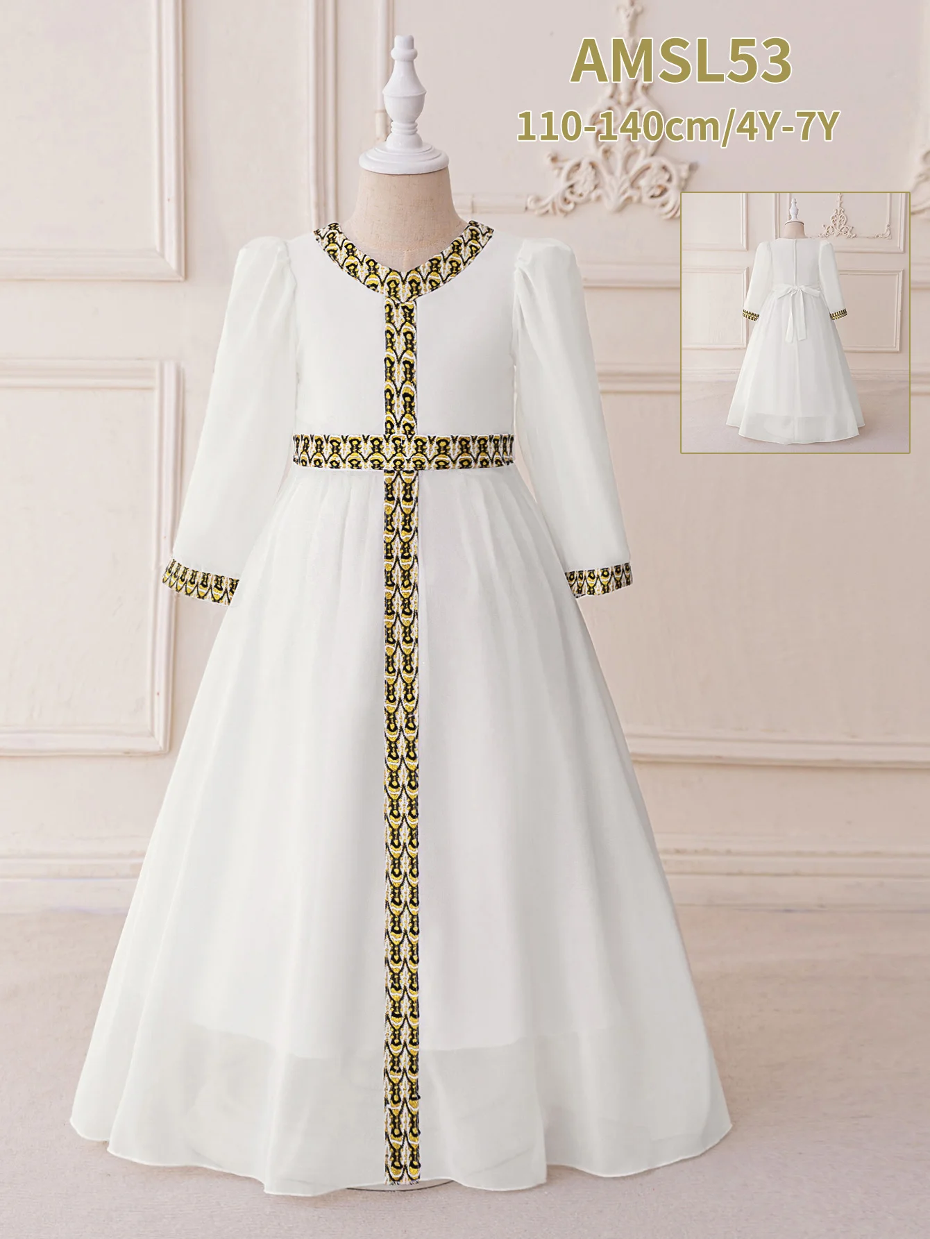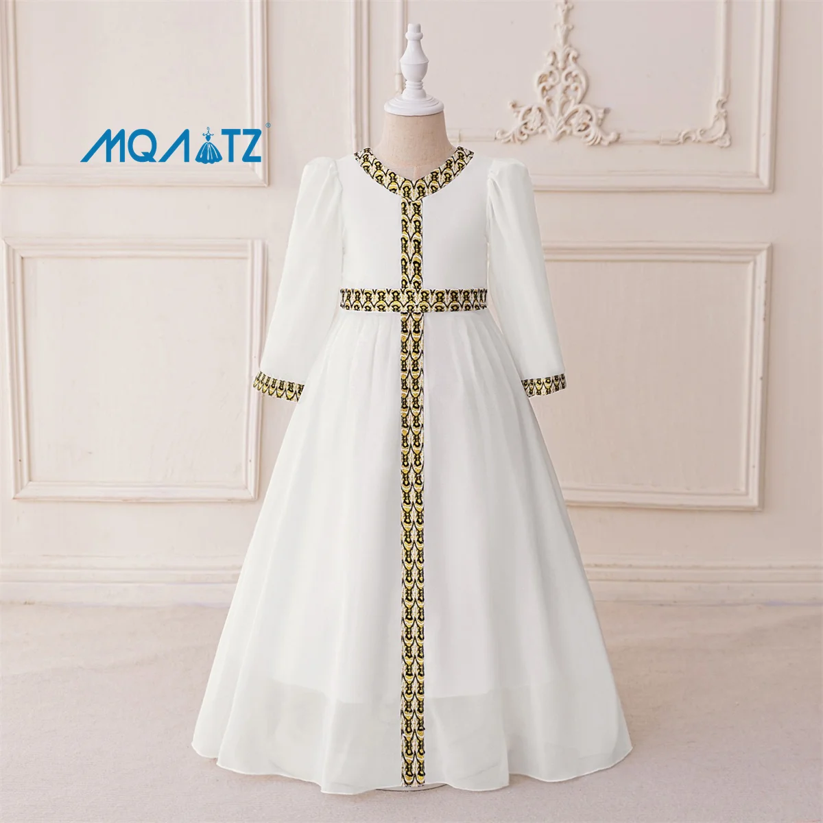 MQATZ Factory Wholesale Polyester Embroidered Long Sleeve Abaya Dress for Girls Middle Eastern Muslim Festival Performance Dress