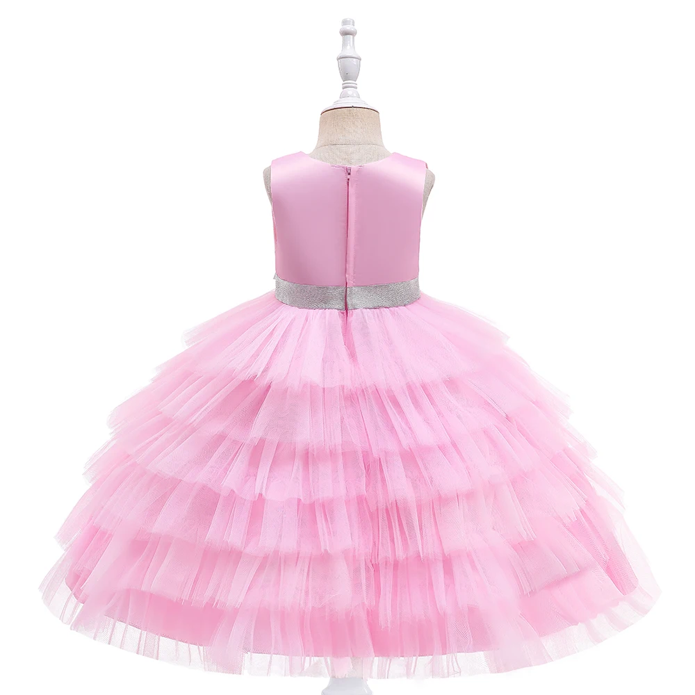 High Quality Girls Floral Satin Dress Spring Party Flower Girl Dress with Lace Ruffle Frock for Kids