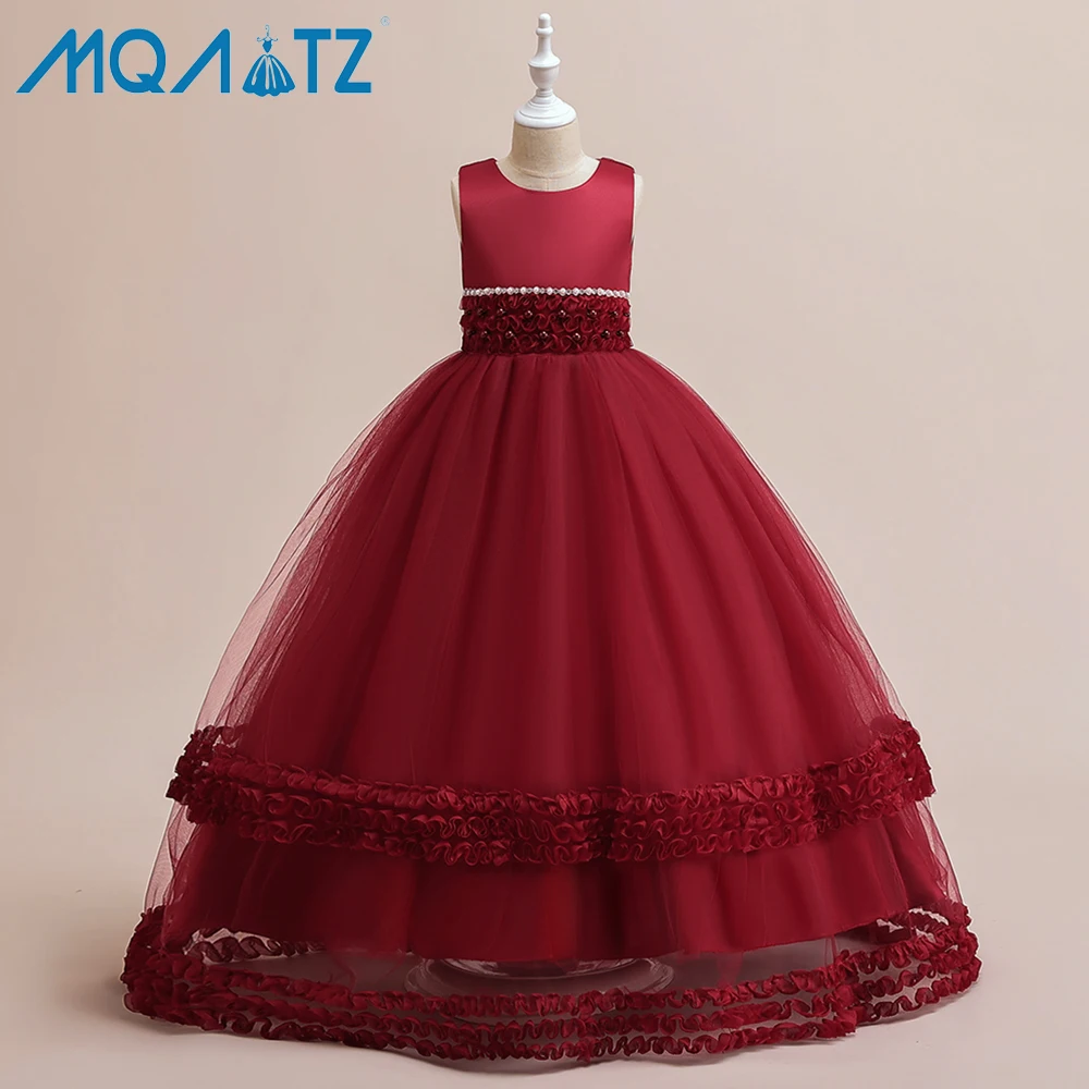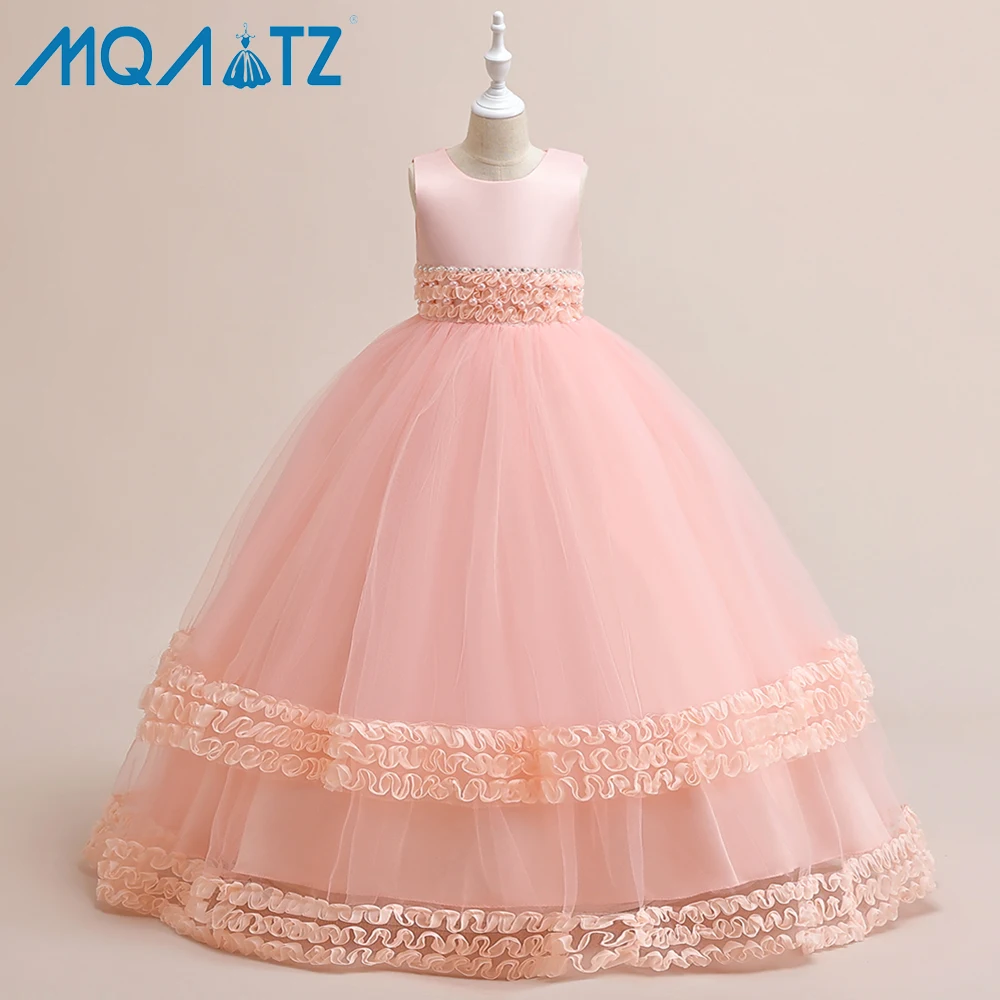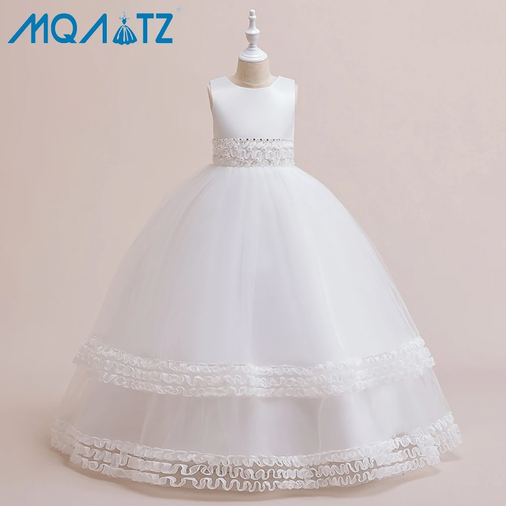 New Year Wedding Party Prom Gown for Girls Children Aged 4-12 Years O-Neck Lace Decoration Crocheted Techniques Satin Fabric