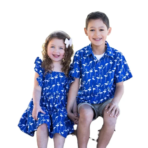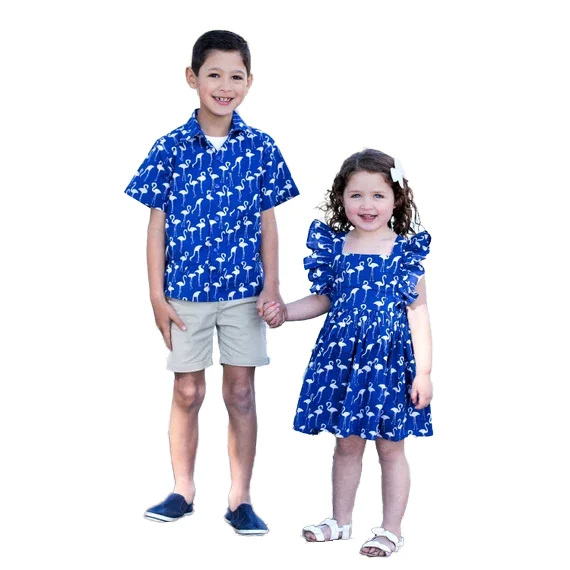 Brother and Sister Summer Casual Wear, Featuring a Round Neck Design, Custom High-quality Printed Baby Sets