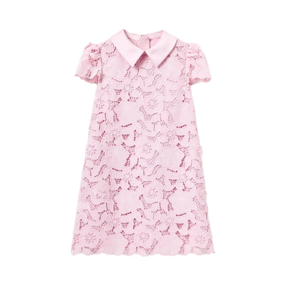 Sweet Summer Solid Red Lace Breathable Dress for Girls Princess Toddler Casual Wear with Square Collar and Ruffle Decoration