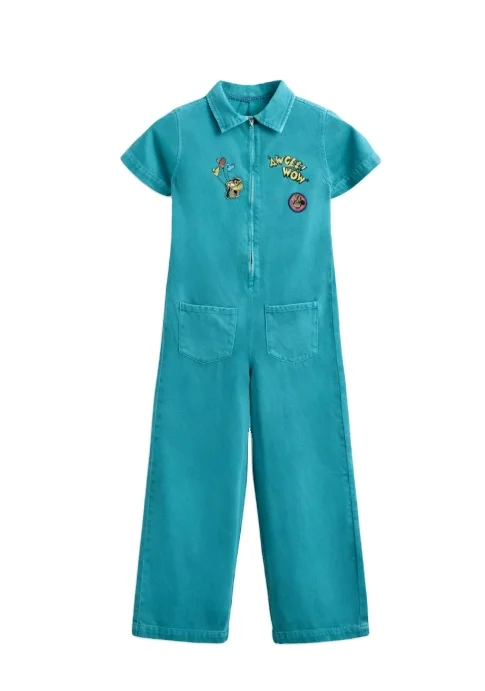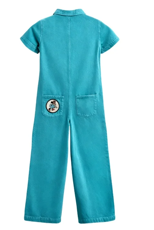 Comfortable Elastic Waist Jumpsuit100% Cotton Knitted Breathable Quick Dry Embroidered Solid Color Short Sleeve