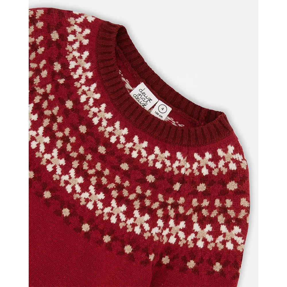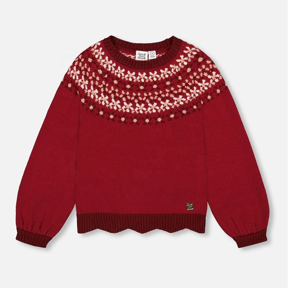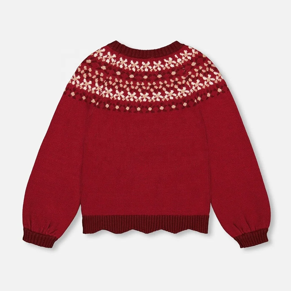 Custom Knit Children Winter Plus Size Girls Red Flower Hand Embroidery Cotton Pullover Toddler Kids Sweaters Factory