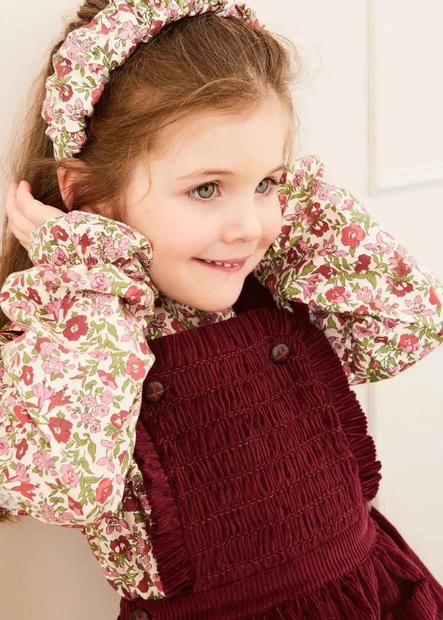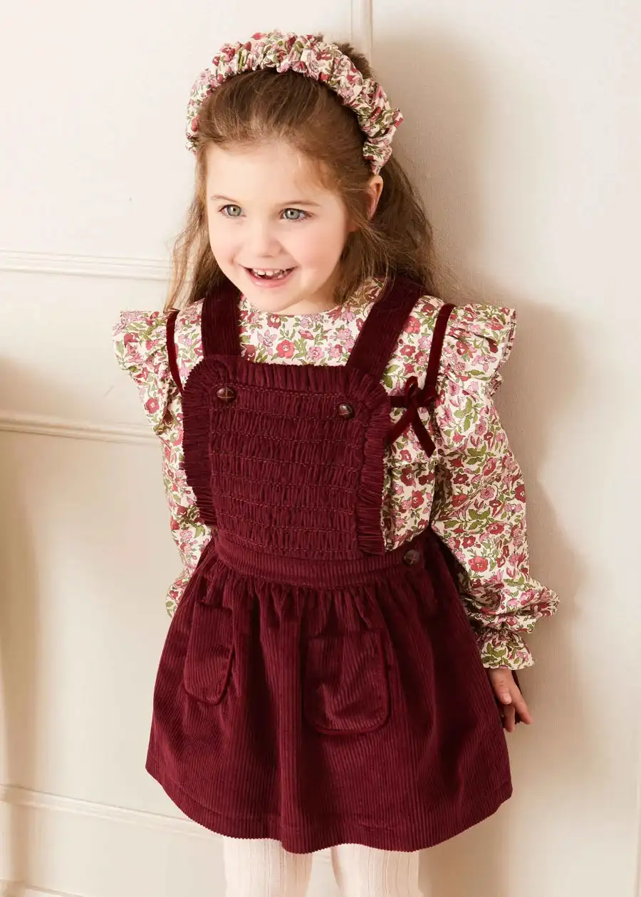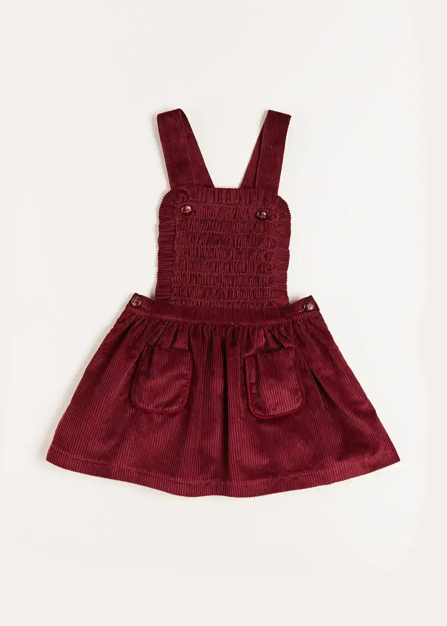 Custom ODM Solid Vintage Burgundy Corduroy Button Jumper for Girls Children's Winter Dress with Two Pockets
