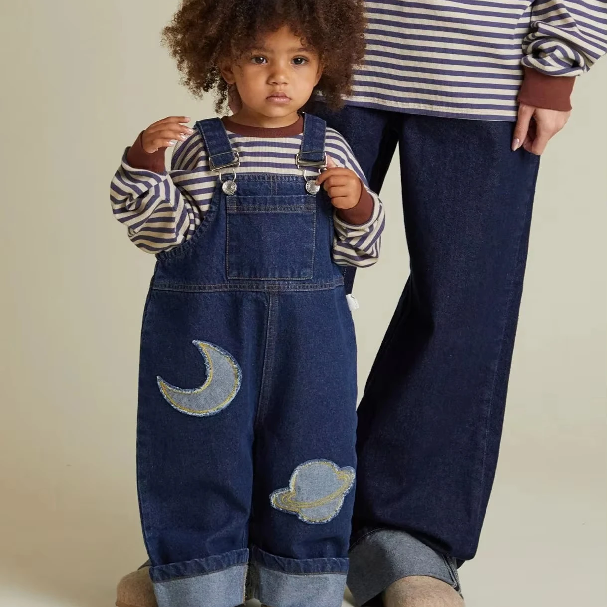 OEM/ODM Boys' Denim Overalls with Star and Planet Patchwork in 2026