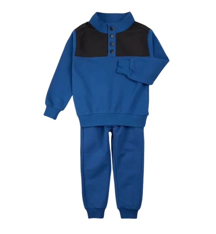 Custom Fashion Kids Clothing Sets Navy Blue Terry Sweatshirts Black Patchwork Boys Jogger Set Winter Boy's Clothing Set