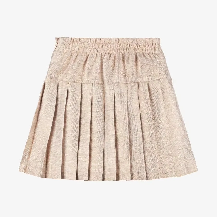Girls Kids Cotton Linen Breathable Eco-Friendly Casual Pleated Above Knee Skirts Children Clothes OEM ODM
