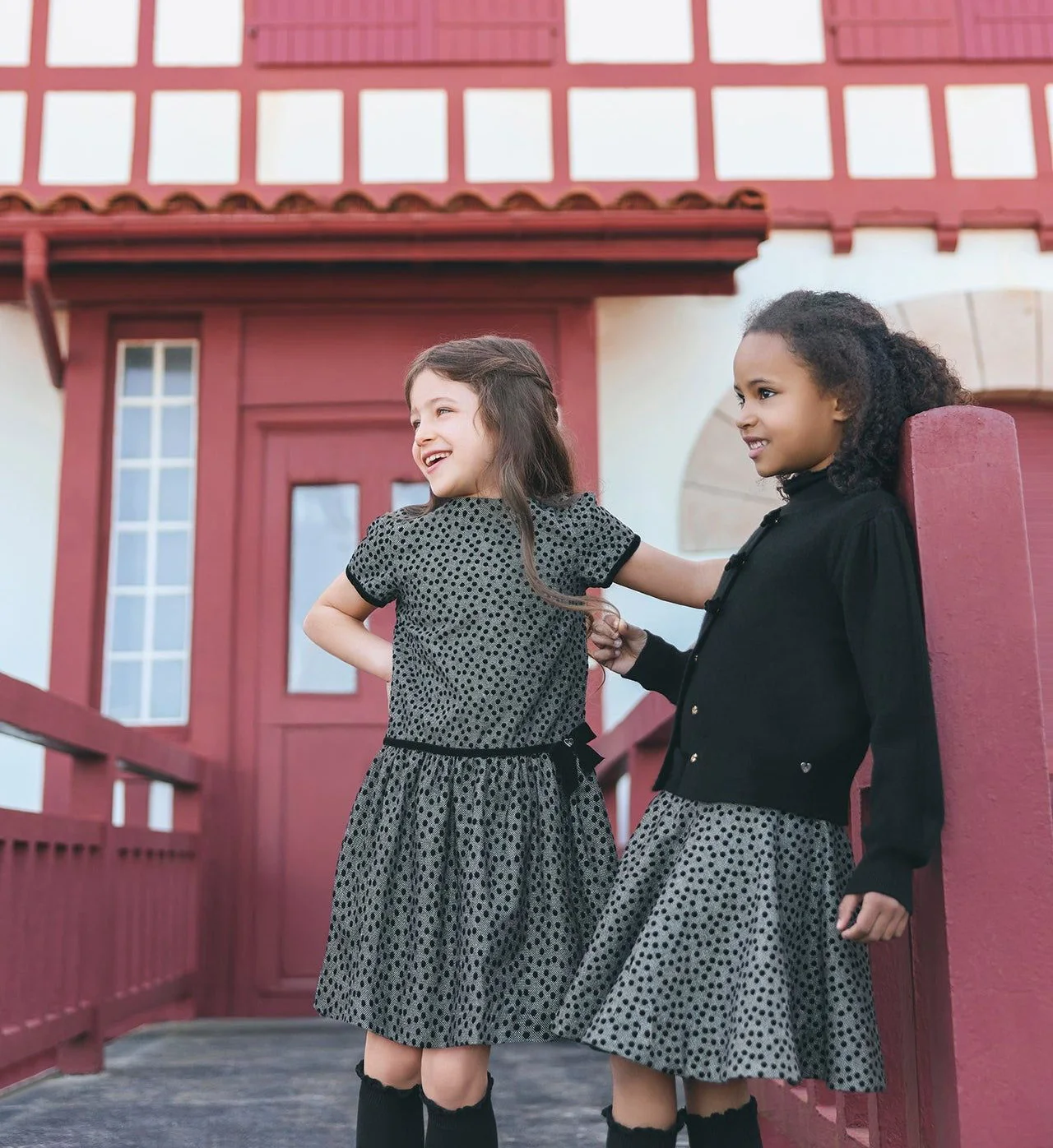 Custom Eco-Friendly Breathable Girls' Skirt Cotton Casual Above Knee Dot Print Zipper Decoration Sister Matching Dress/skirt