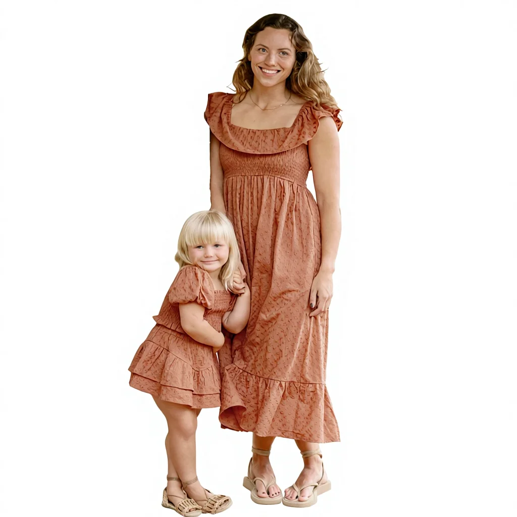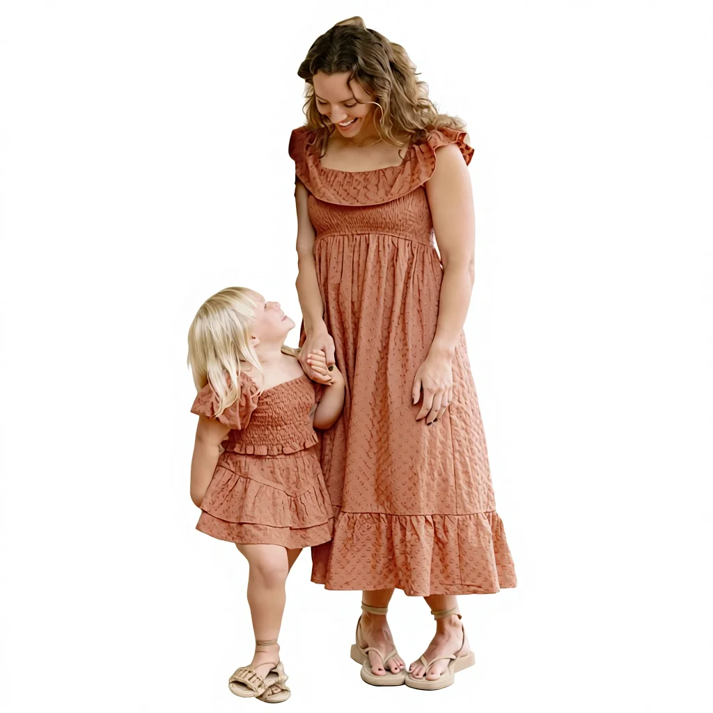 Baby Girls Mommy Me Casual Family Parent-child Clothing Lightweight Breathable V-Neck High Waist Elastic Closure Printed Dress