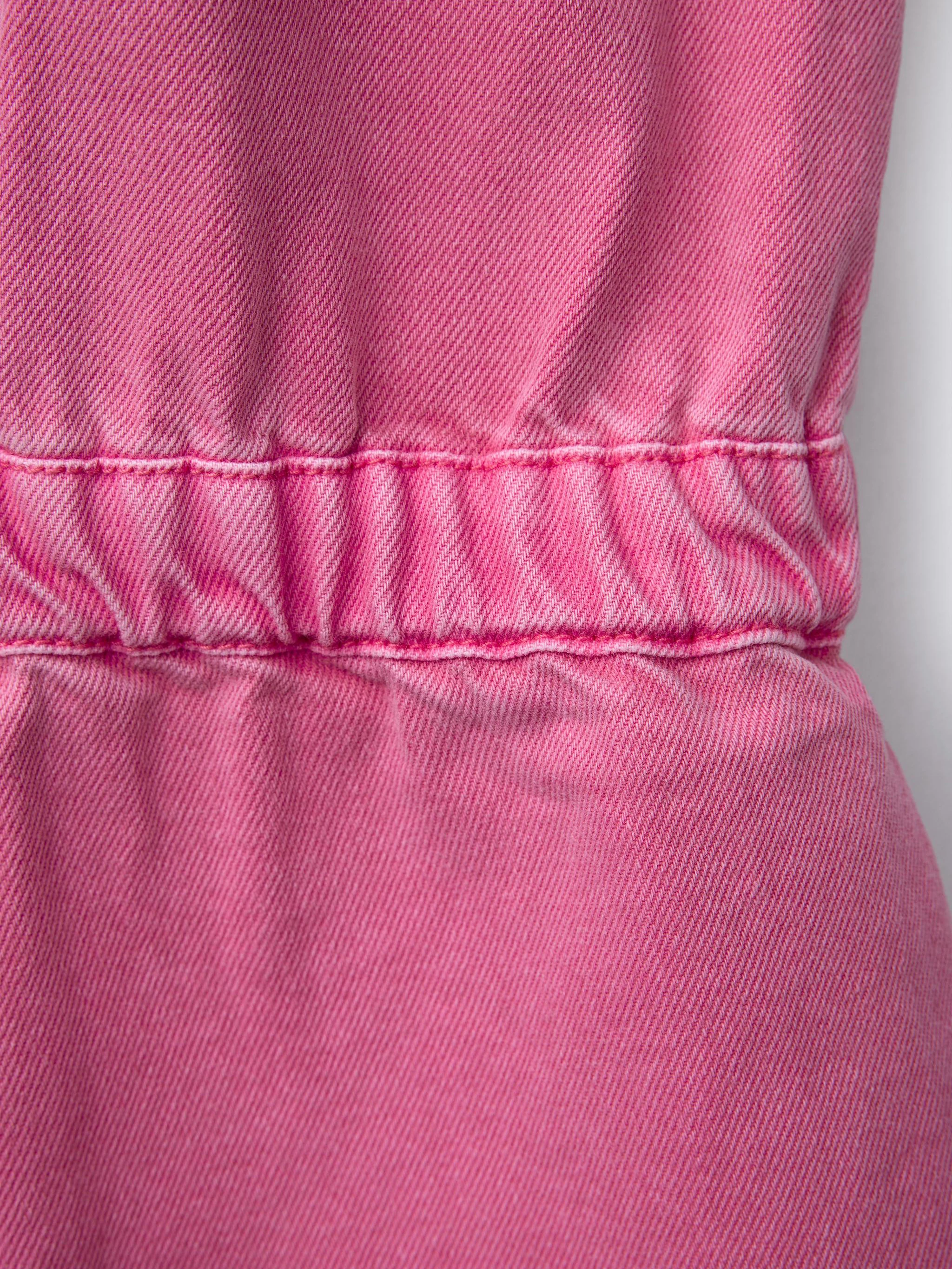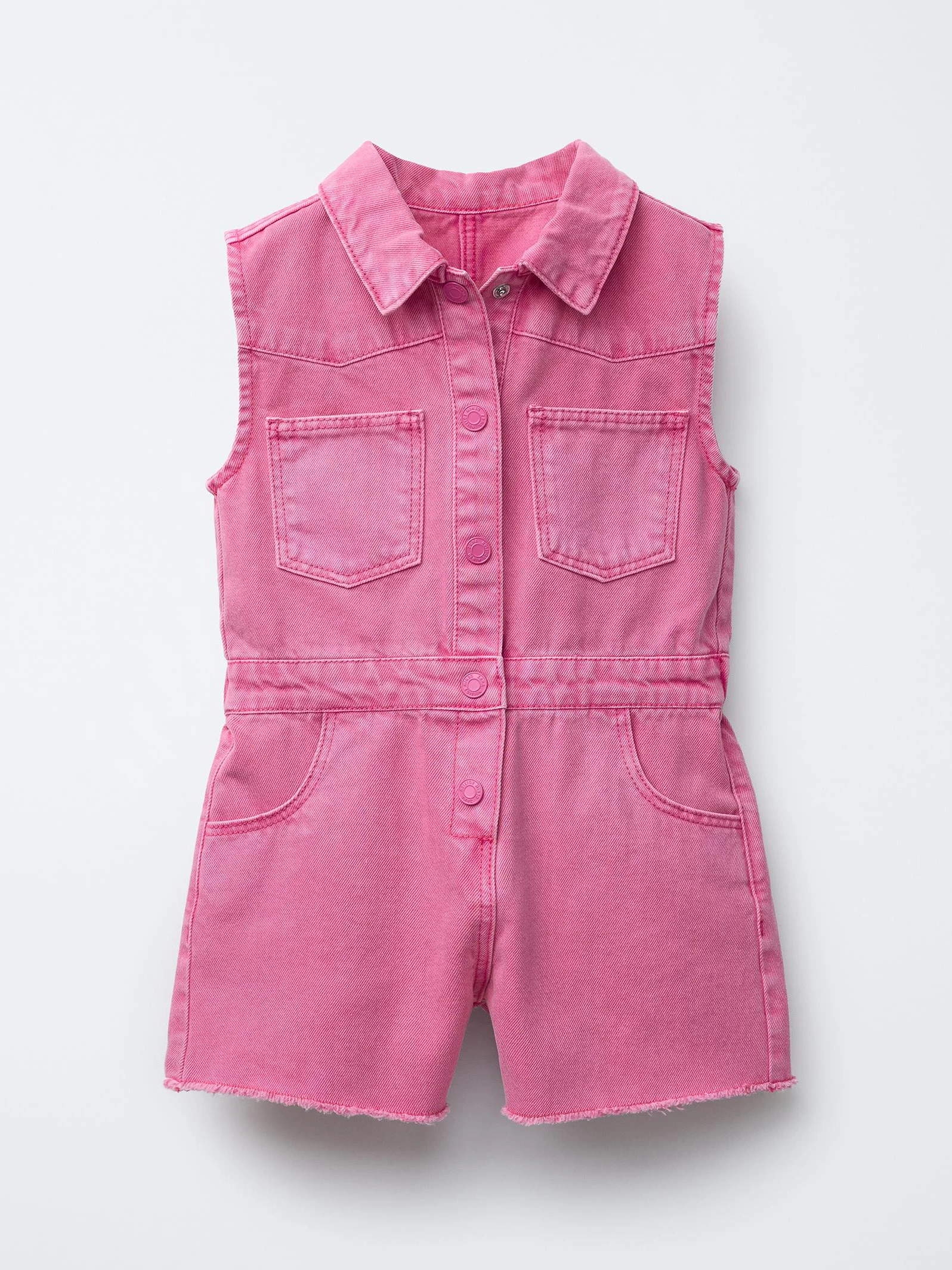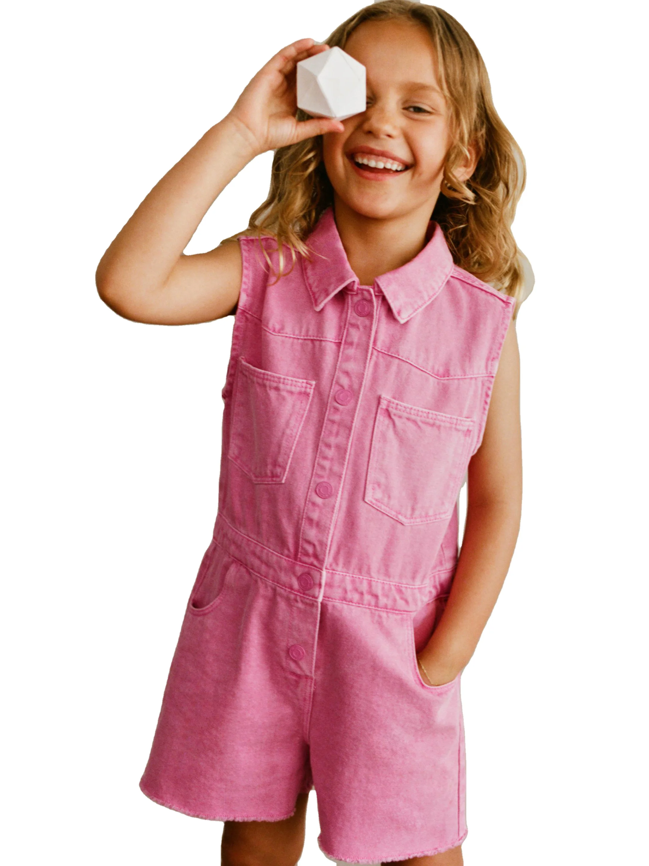 Girls' Summer Custom Denim Overalls with Anti-Wrinkle Embroidered Large Pockets and Loose-Fit Top Design