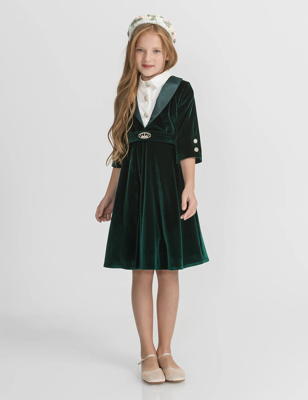 12-year-old Girl's Classic Velvet A-line Floor-Length Loose-fitting Embroidered 100% Cotton Solid Breathable Spring Party Dress