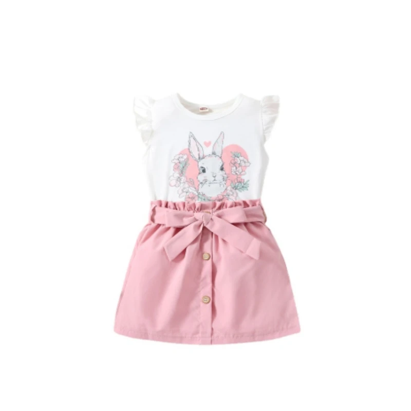 Girls Summer Apparel Set Customizable Cute Top and Skirt 3D Embroidery Fashion Outfit for Kids OEM