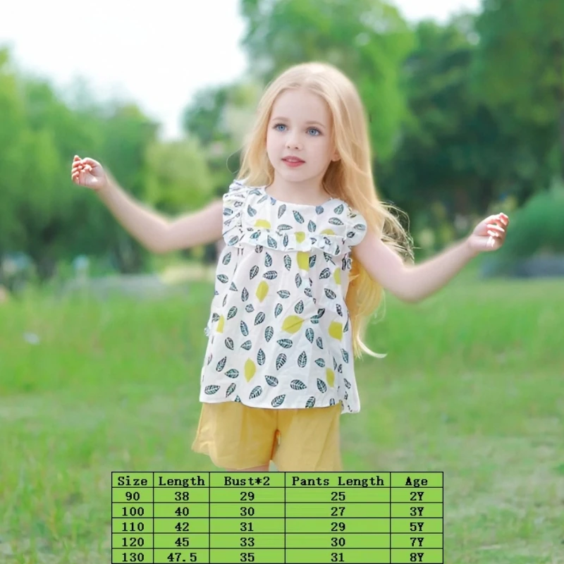 Baby Girl Summer Toddler Two-Piece Eco-Friendly Polyester/Cotton Short Sleeveless Vest T-shirt Tops Shorts Pants Set