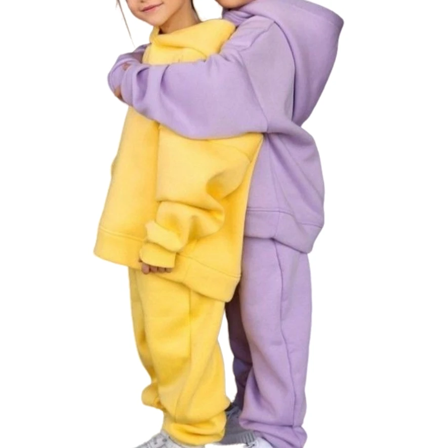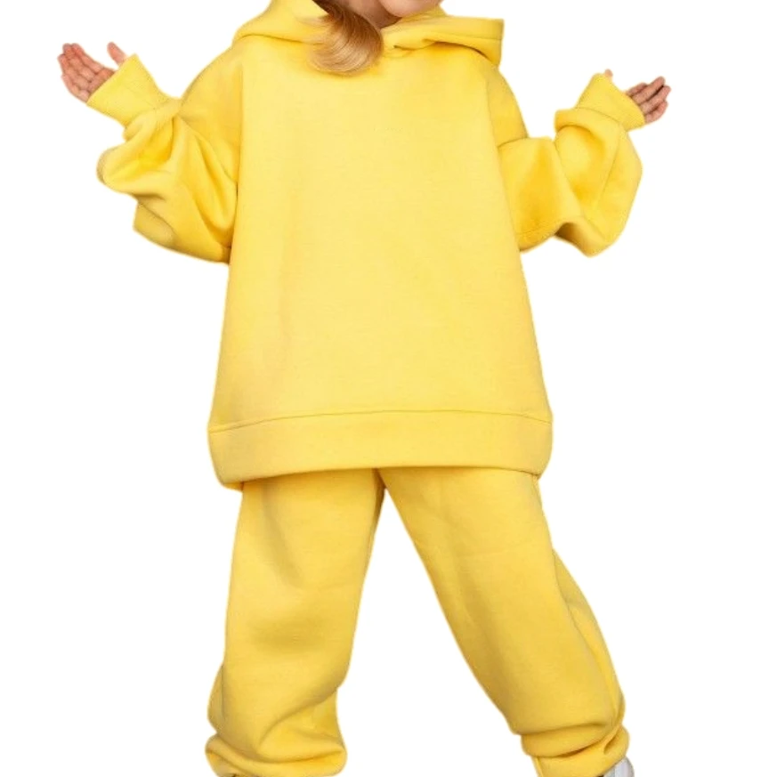 Boy Girl Fall Tracksuit Sportswear Outfit Solid Sweatsuit Sweatshirt Pullover Top Pants Set Hoodies for Kids