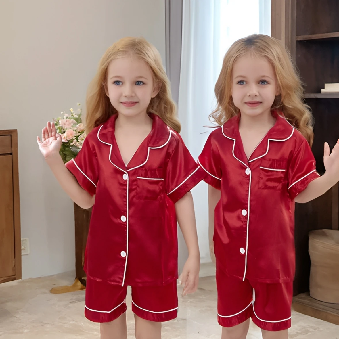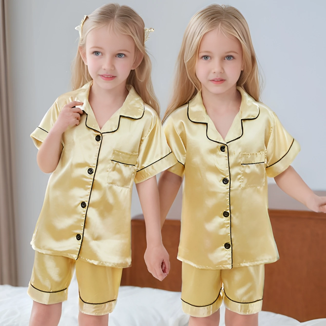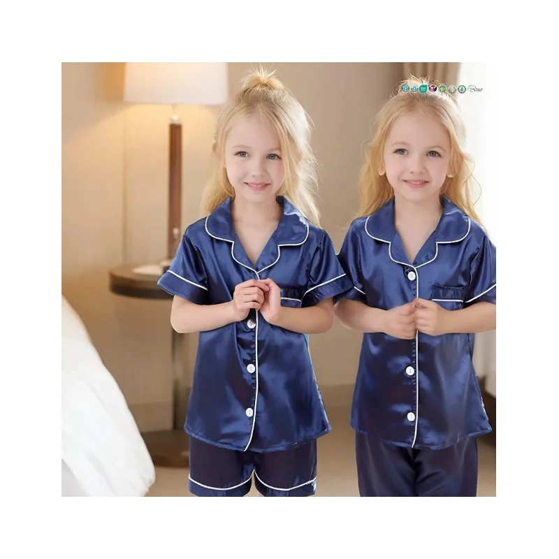Wholesale Children Clothes Set Kids Summer Short Sleeve Sleepwear Polyester Girls Pajamas