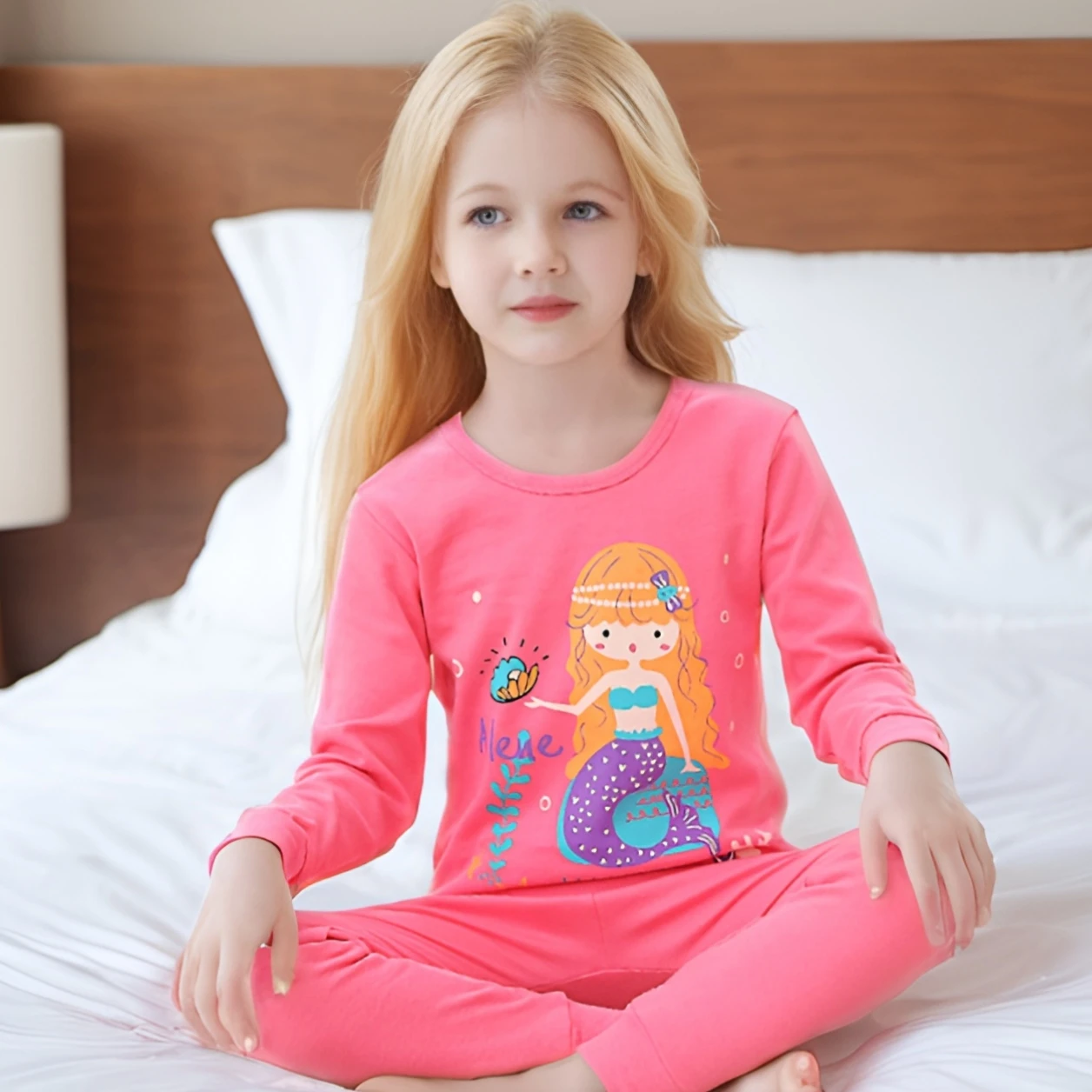 High Quality 100% Cotton Sleeping Clothes Cartoon Girl Boy Cute Lovely Pajamas Kids 8T Character Sleepwear 2 PCS Set