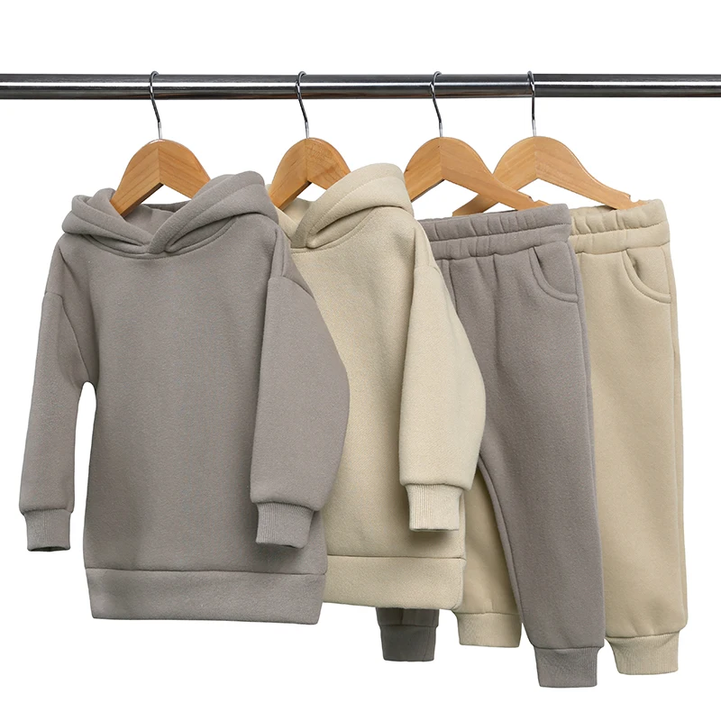 Baby Clothing Wholesale Fleece Winter Outfits Solid Cotton Hooded Children's Clothing Kids Sweat Suits Hoodies Sets
