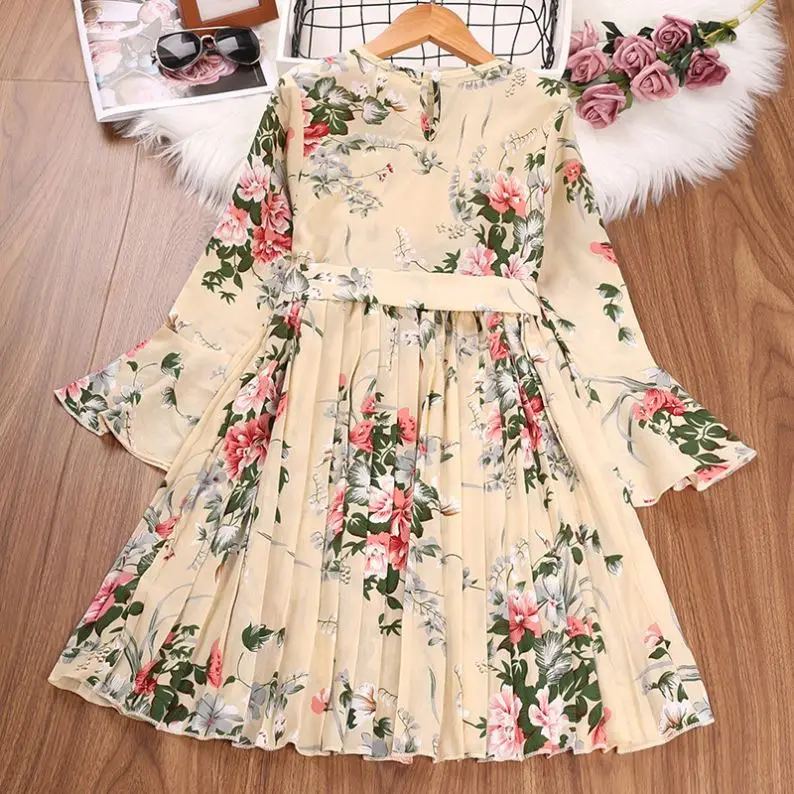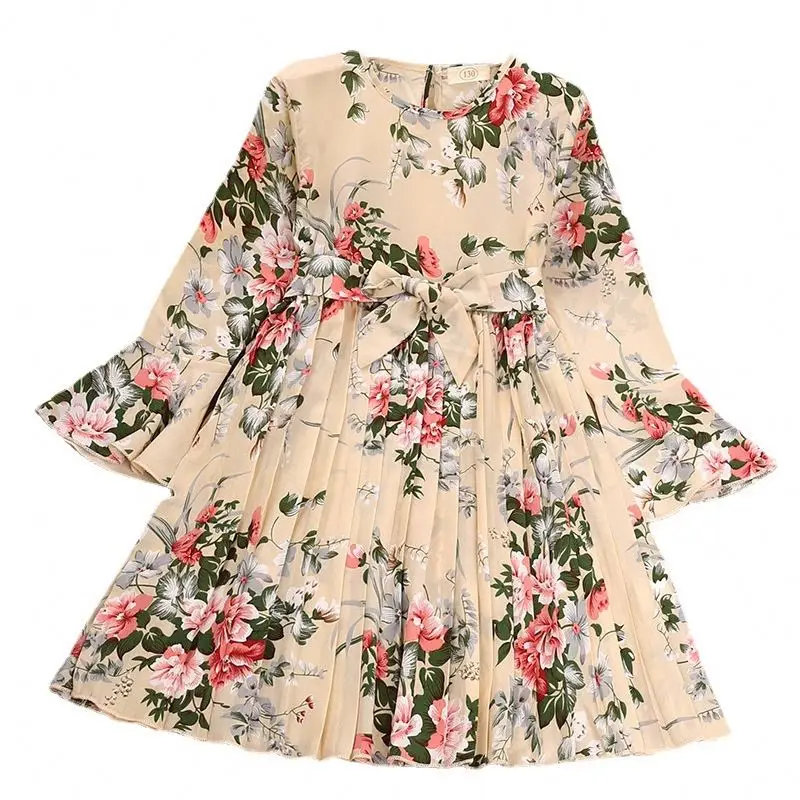 Summer Girls Floral Printed Casual Knee-Length Long Sleeve Dresses for 2-6 Years Kids ODM Service 100% Polyester