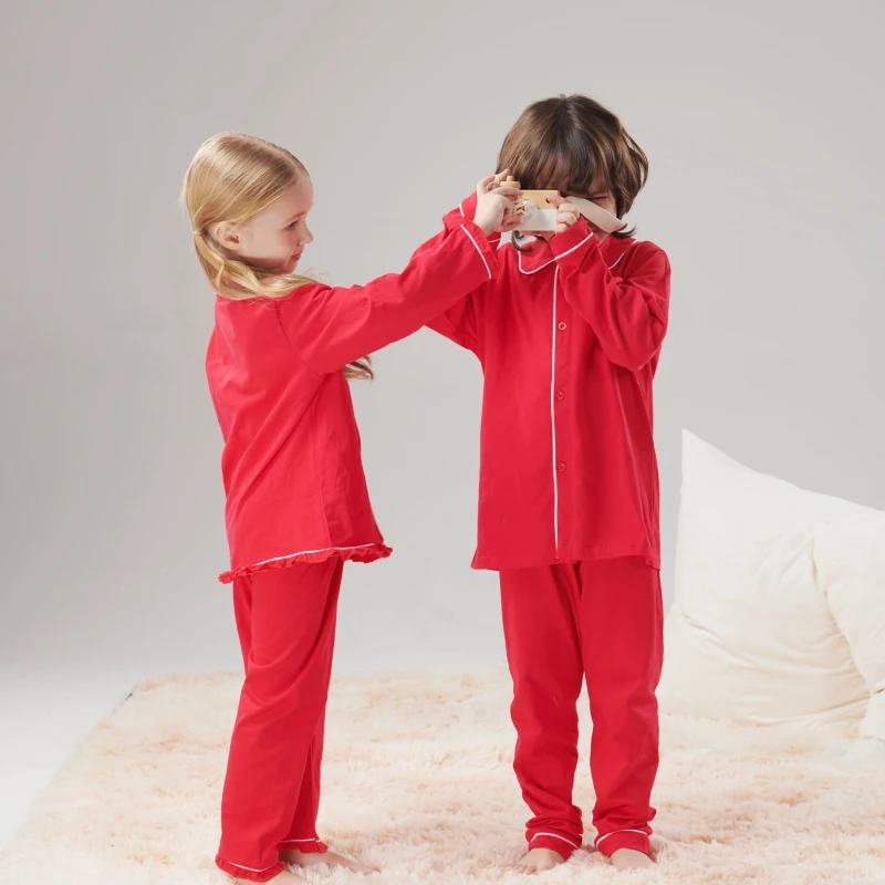 Wholesale 2-Piece Toddler Girls Clothing Sets Formal Style Solid Pijama Comfortable Cotton Fabric