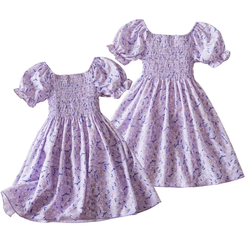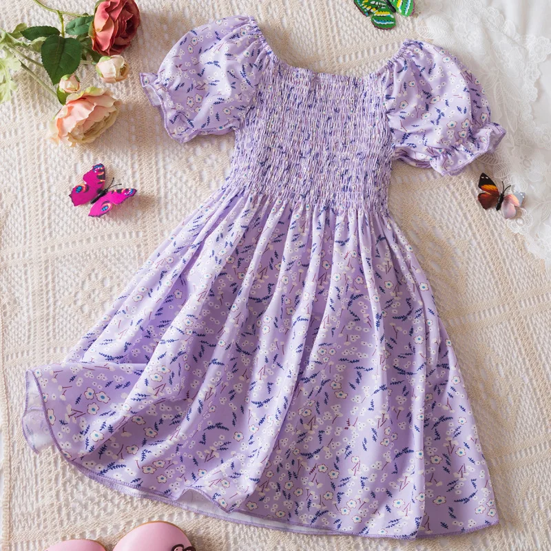 Costume Girls' Summer Sweet Princess Floral Dress Puff Sleeves High Waist Dresses for Girls