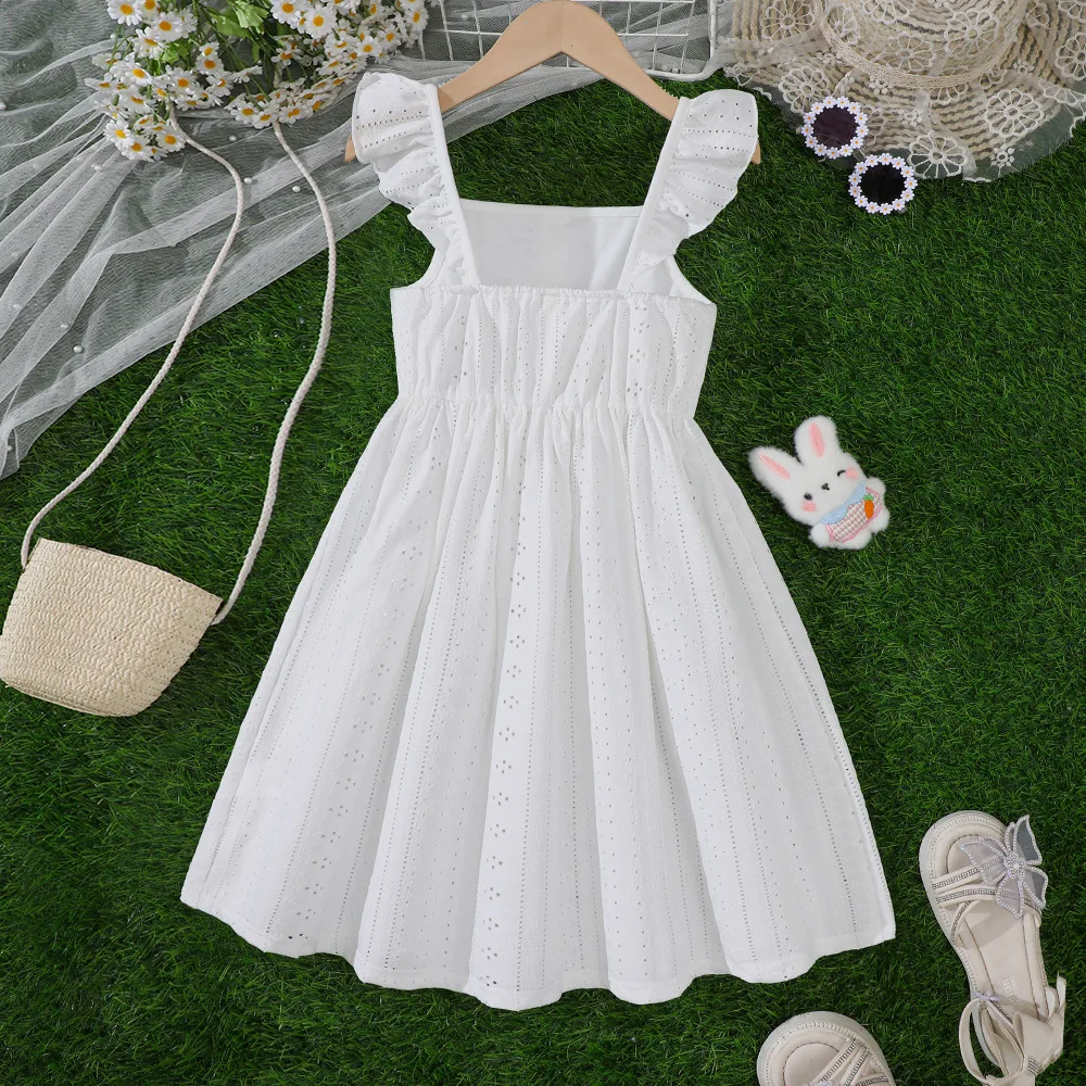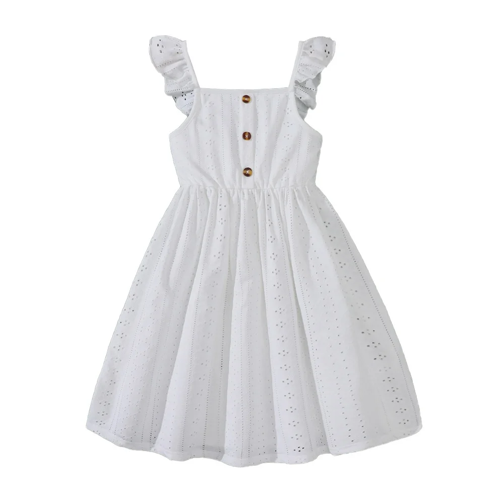 New Girls' Summer Dresses Single-Breasted Flutter Sleeves Solid Casual Style Children's Clothing Button Decoration ODM Supply