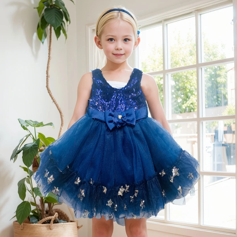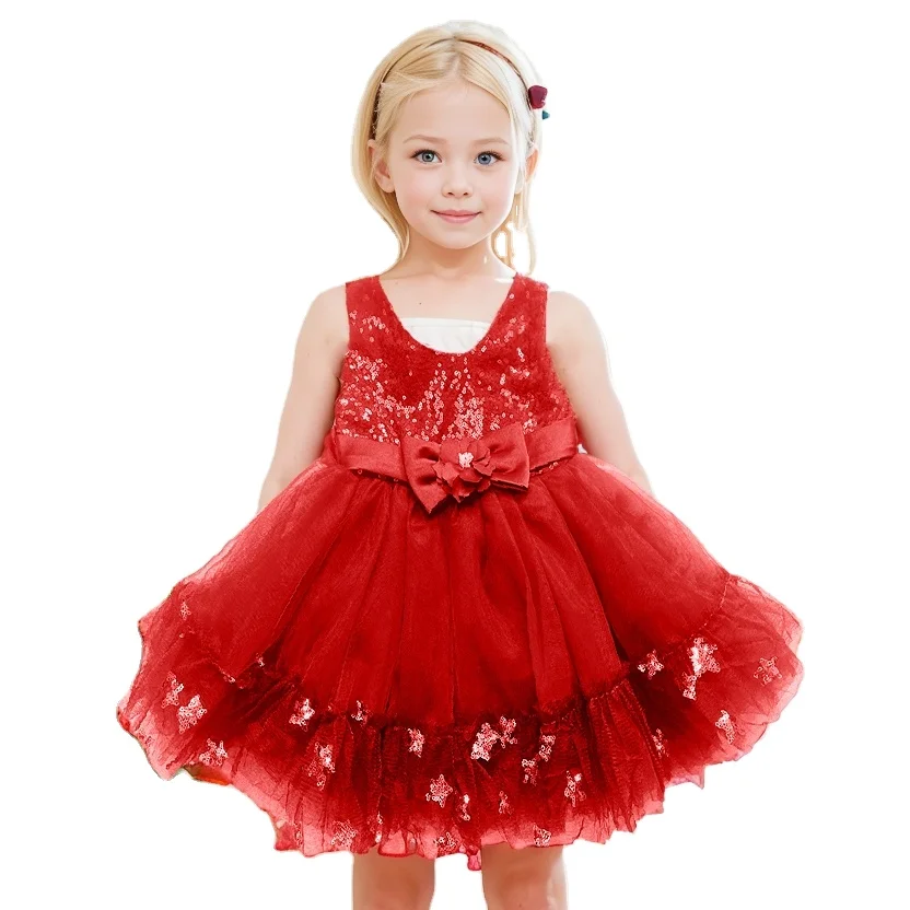 Princess Girls Dress Kids Formal Wear Summer Sleeveless with Lace Skirt O-Neck Solid Pattern Woven Fabric ODM