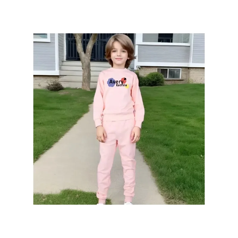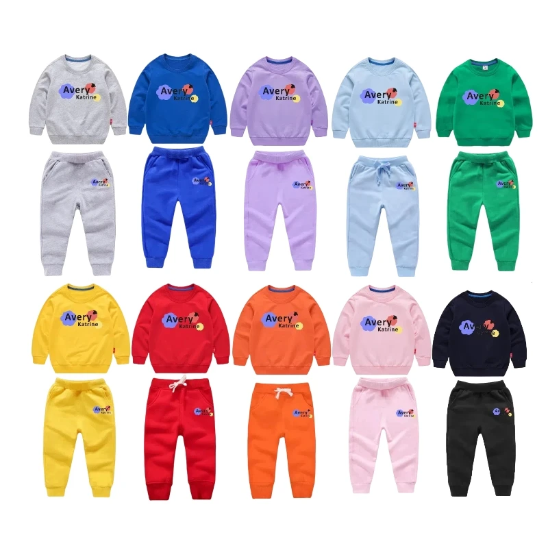 Unisex Children's Sweat Suit Set for Boys Casual Style with Solid Pattern for Spring and Autumn Wholesale