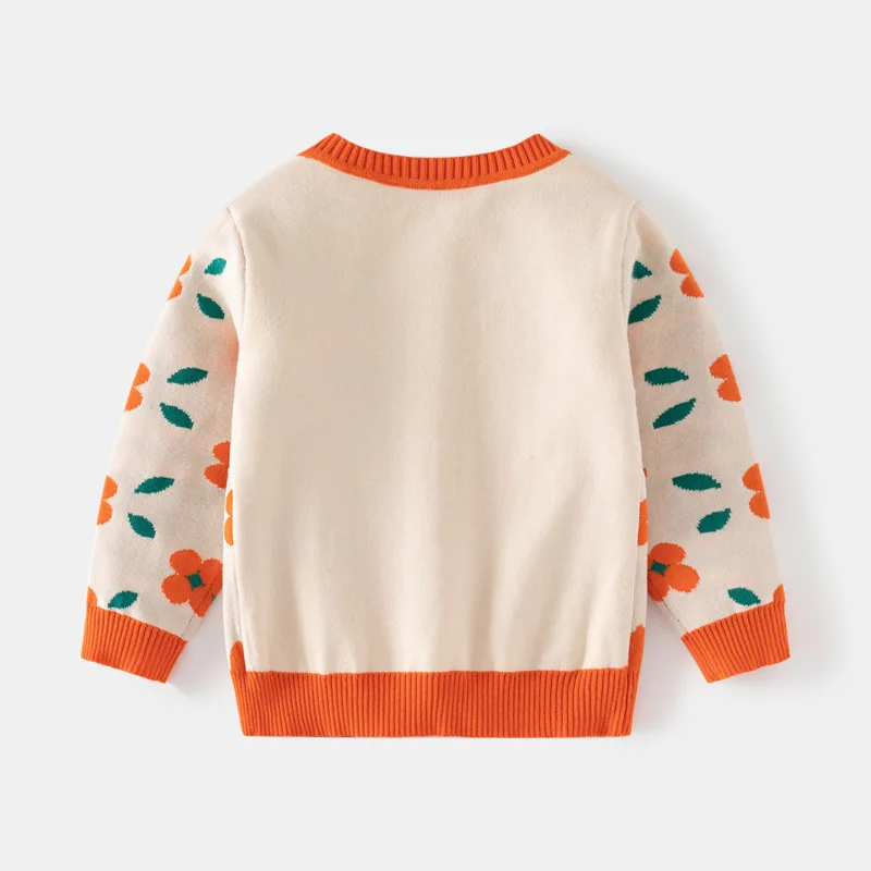 Manufacturer's Girls' Double-Layer Cotton Cardigan Floral Knit Sweater for Autumn Seasons