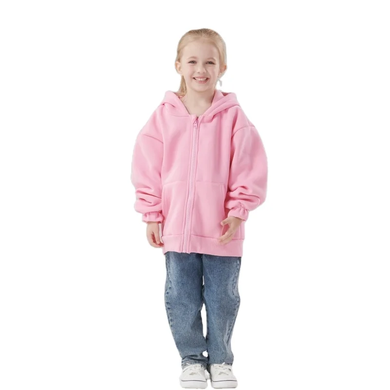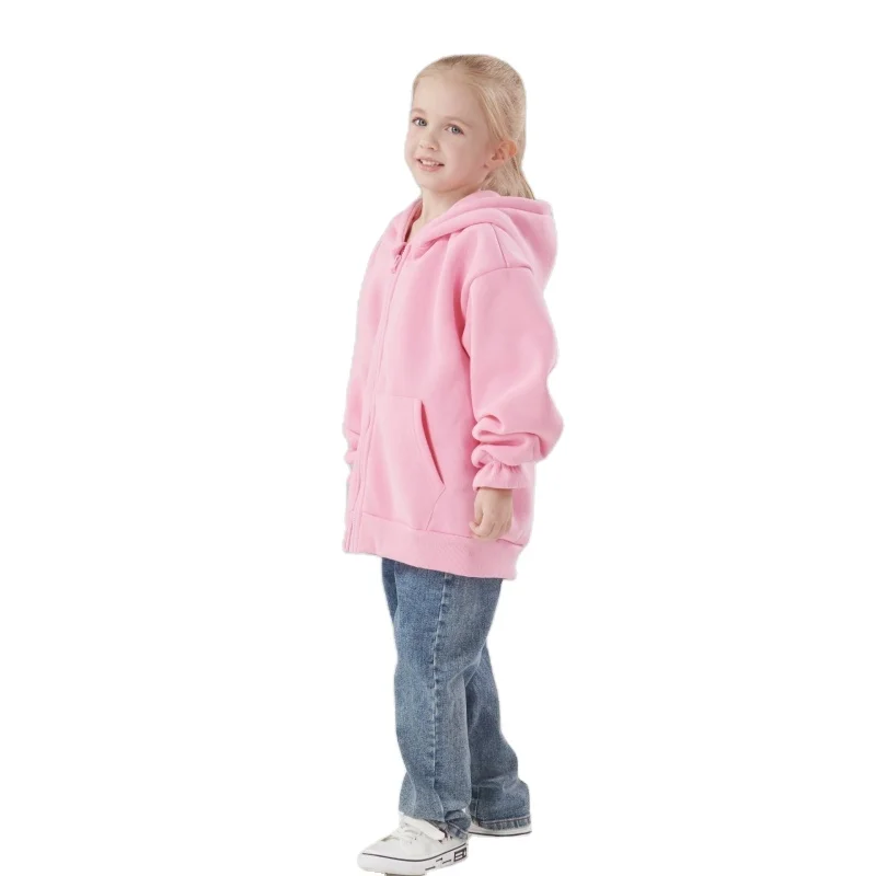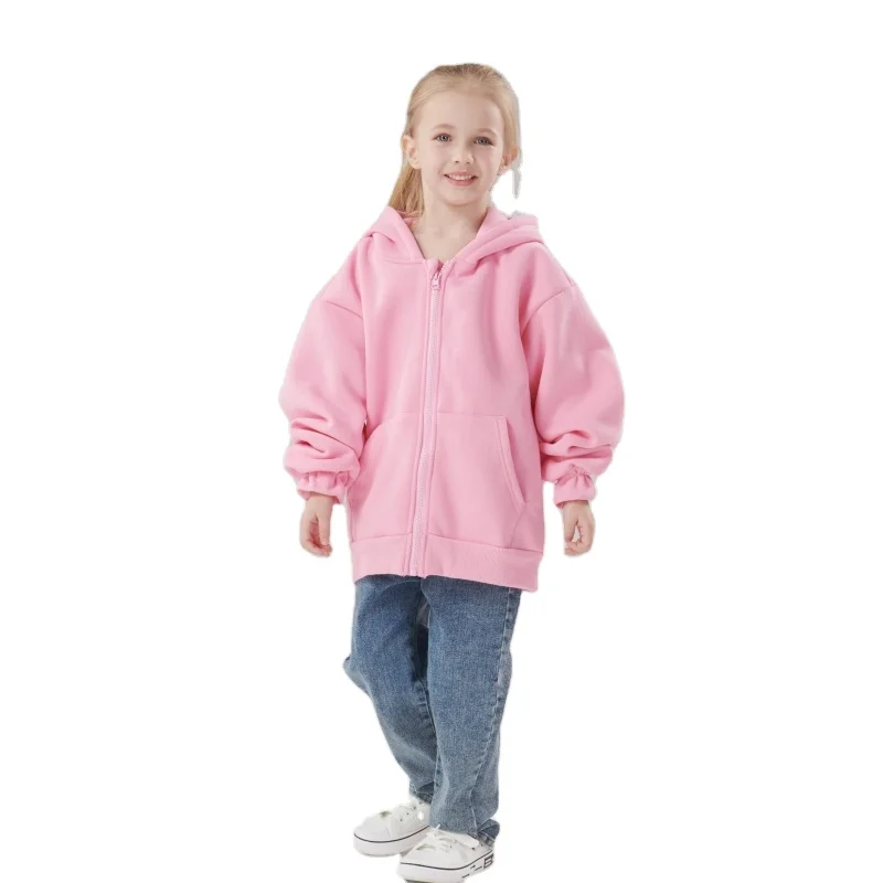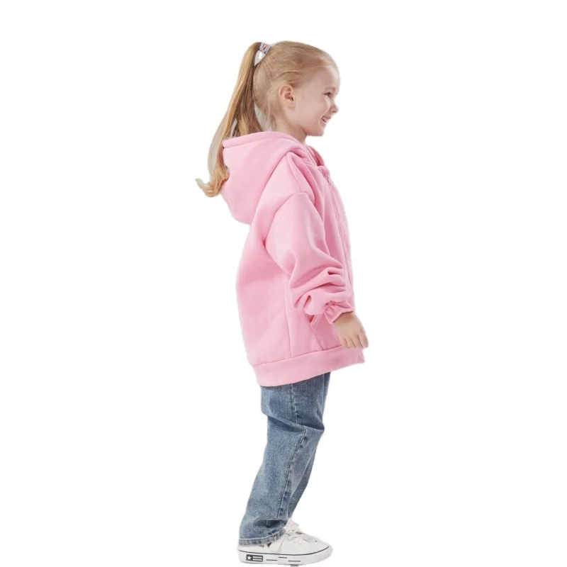 New Autumn Winter Korean Clothing Coats for Boys and Girls Fleece Kid Hoodie with Zipper Solid Pattern