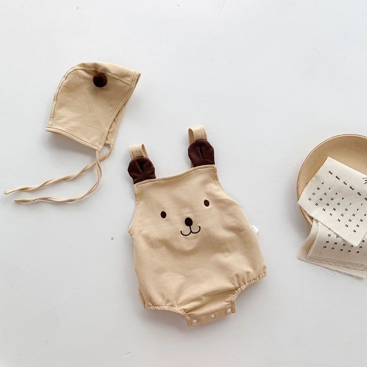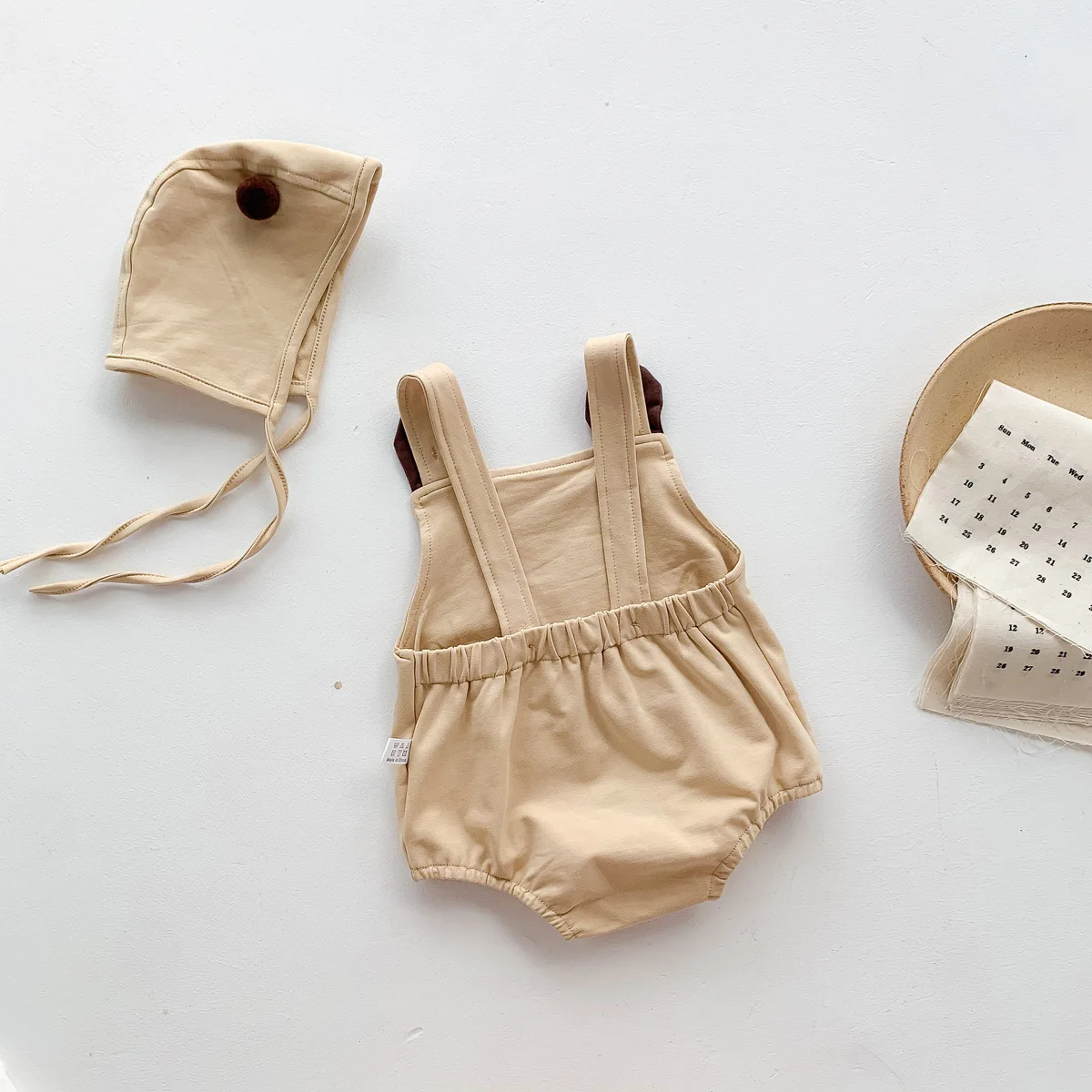 Summer Korean Version of Baby Jumpsuits for Boys and Girls Cute Bear Cartoon Sling Fart Clothes Romper with Hat