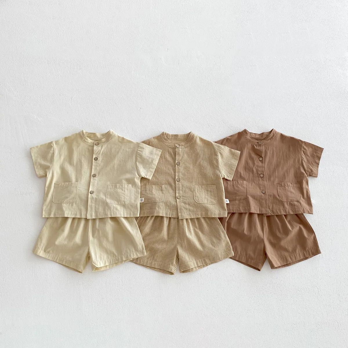 2026 Summer Children's Suit Korean Version Boy Cotton Thin Short Sleeve New Solid Color Two-piece Suit Boys Set