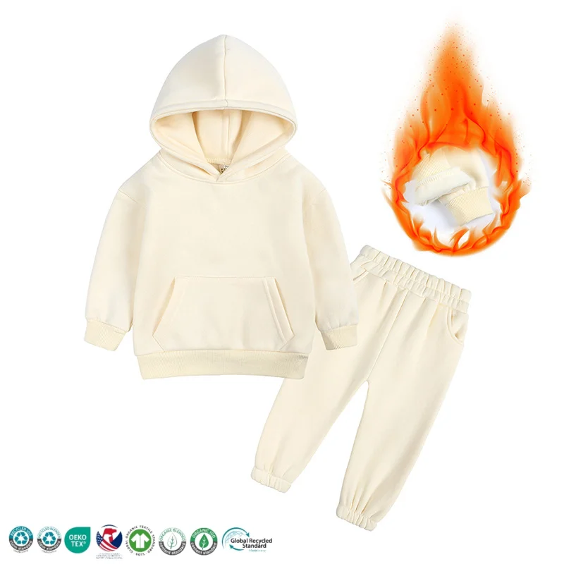 Solid Pattern Cotton Girls Clothing Sets Custom Logo Sweatpants Hoodie Kids Suits