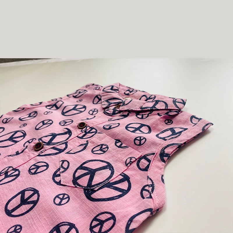 Summer Casual Kids T-Shirt Boys Polo Shirt Purple Sleeveless Design O-Neck Washed Technics Printed Cartoon Pattern for Beach