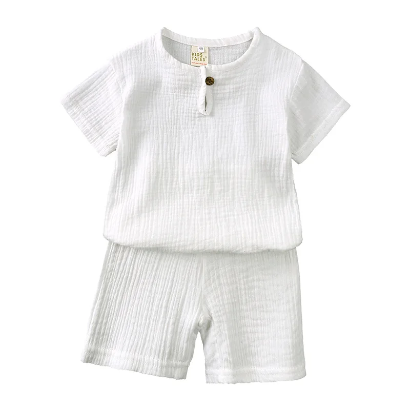 2026 Kid clothing boys and girls short-sleeved summer suits cotton and linen button short-sleeved T-shirt thin two-piece suit