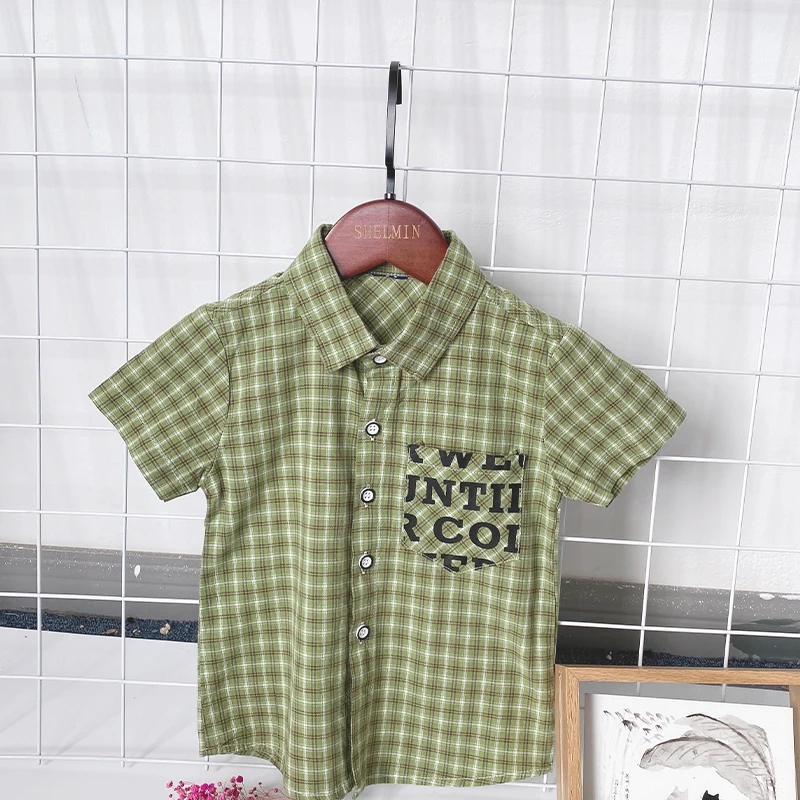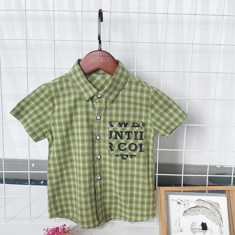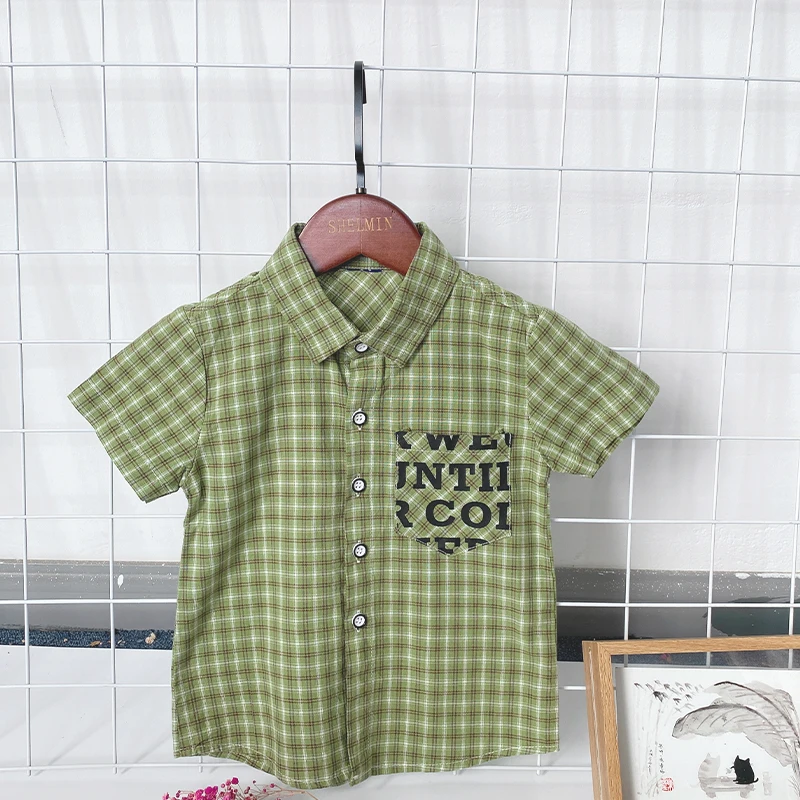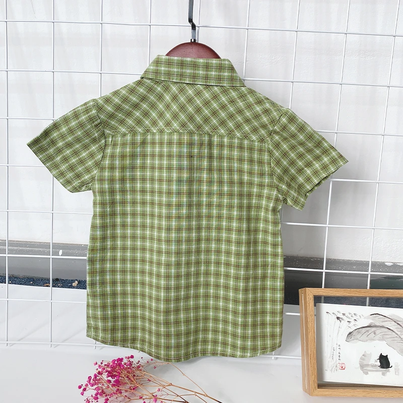 Pure Cotton Short Sleeve Kids Shirts for 3-10 Years Old New Children's Casual Striped Shirts for Spring Autumn Washed Technique