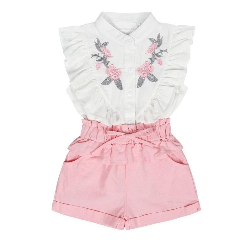 Girls Summer Apparel Set Customizable Cute Top and Skirt 3D Embroidery Fashion Outfit for Kids OEM